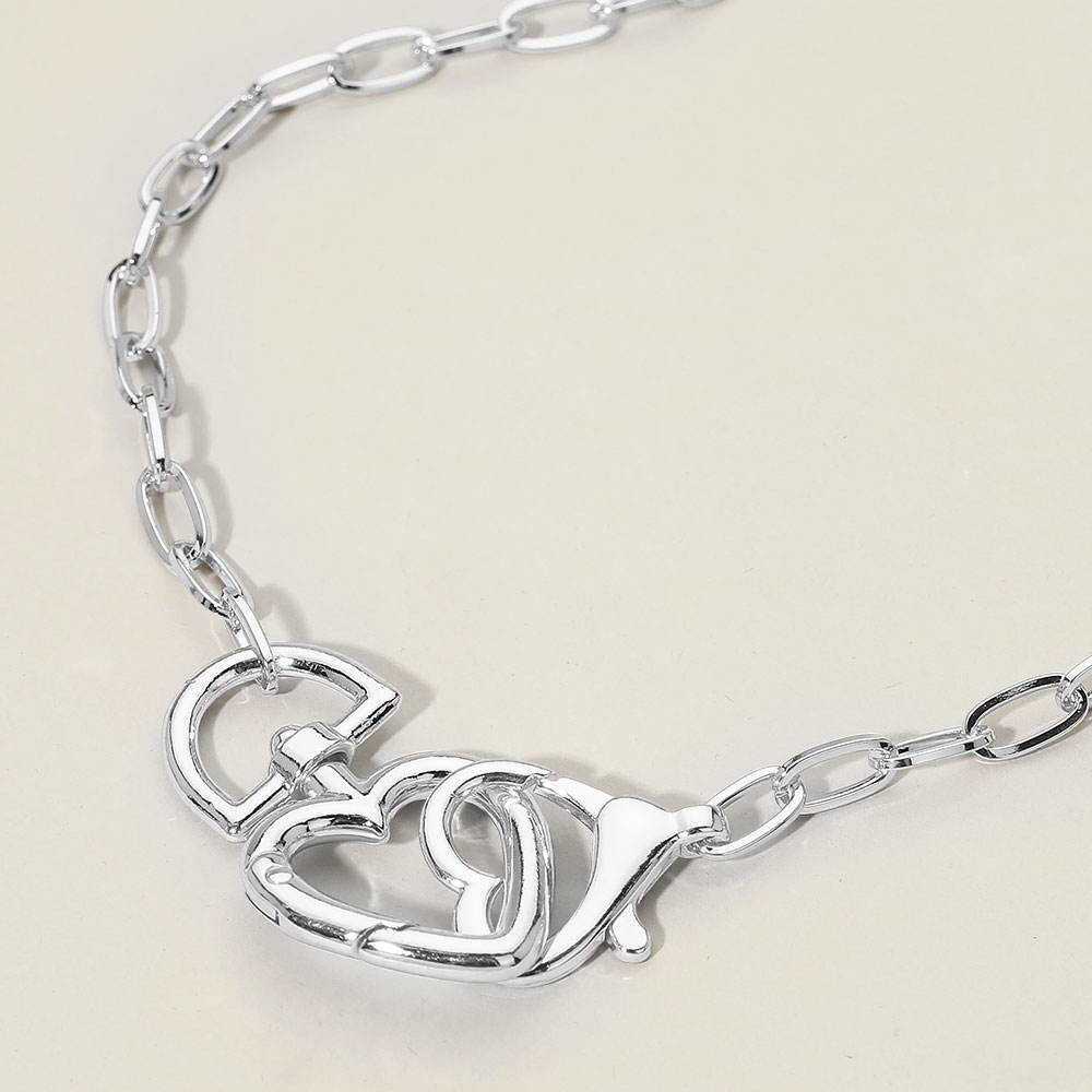 Details • Necklace Size : 17" + 1.75" L • Decor Size : 1" L • This heart link chain necklace features an elegant chain design accented by a sculptural heart-inspired clasp that doubles as a focal detail. Designed to blend modern edge with romantic appeal, it offers versatile styling for everyday wear or layered looks, making it a strong statement piece for contemporary jewelry collections. • Lead and Nickel Compliant