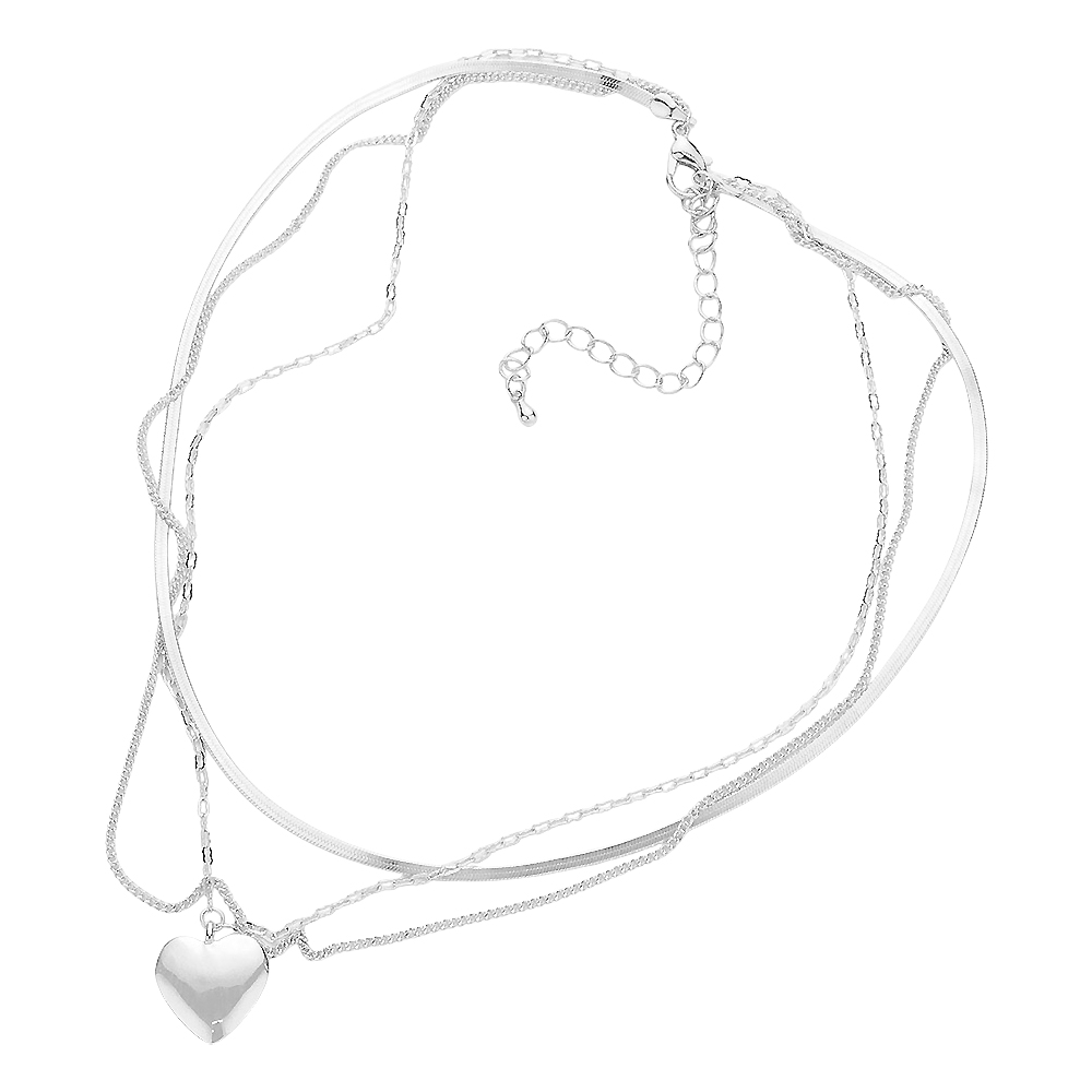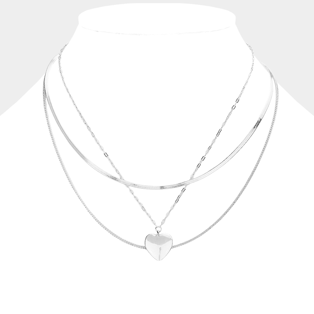 Metal Heart Pendant Triple Layered Necklace