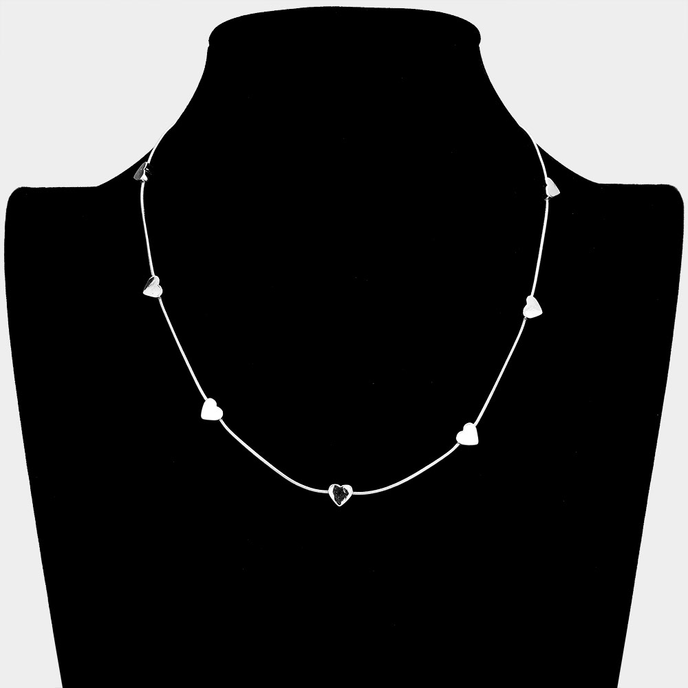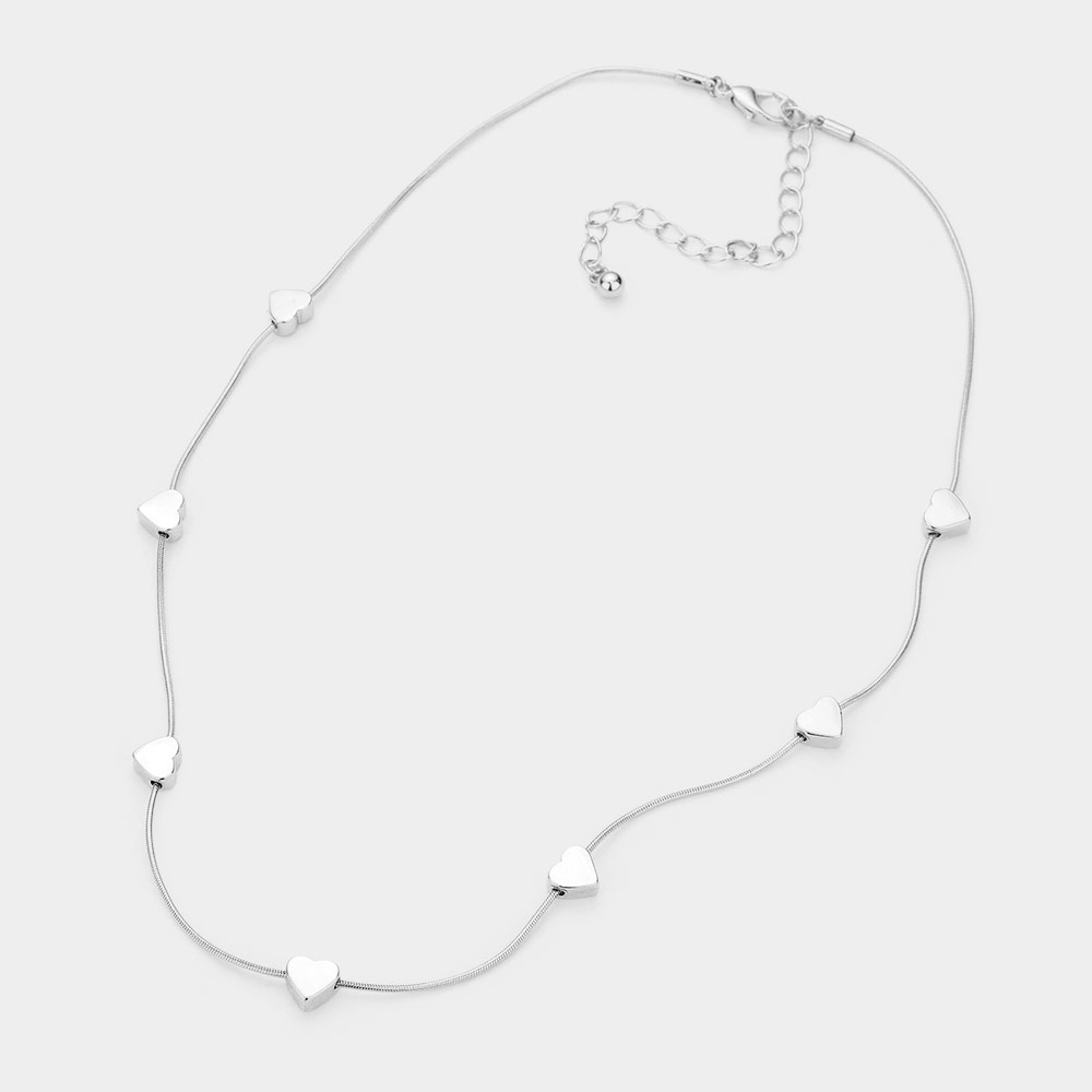 Silver Dipped Bow Quatrefoil Lock Heart Charm Station Necklace