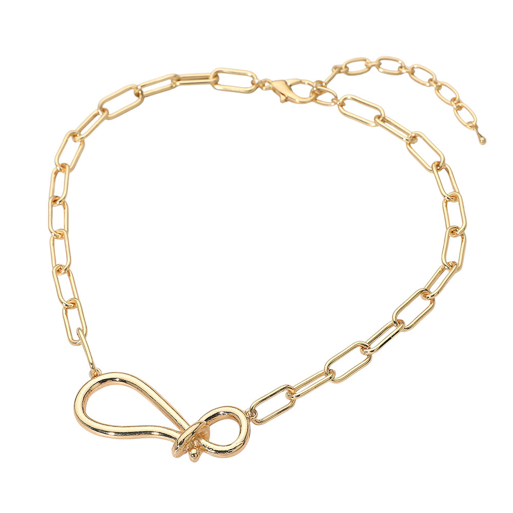 Details • Necklace Size : 16" + 3" L • Decor Size : 0.8" L • Elevate your style with this chain link necklace featuring a modern loop pendant for a bold yet minimal look. Adjustable for the perfect fit, this versatile accessory pairs effortlessly with casual or dressy outfits, making it a must-have statement piece for layering or solo wear. • Lead and Nickel Compliant