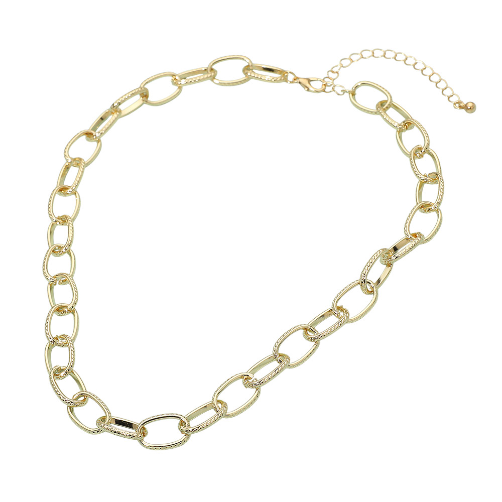 Details • Necklace Size : 17" + 3" L • Decor Size : 0.4" L • Elevate everyday looks with this oval link chain necklace featuring a sleek open-link design and adjustable length for a comfortable fit. Perfect worn solo or layered, it adds modern polish to casual outfits and refined elegance to dressy ensembles. • Lead and Nickel Compliant