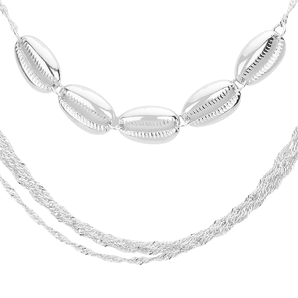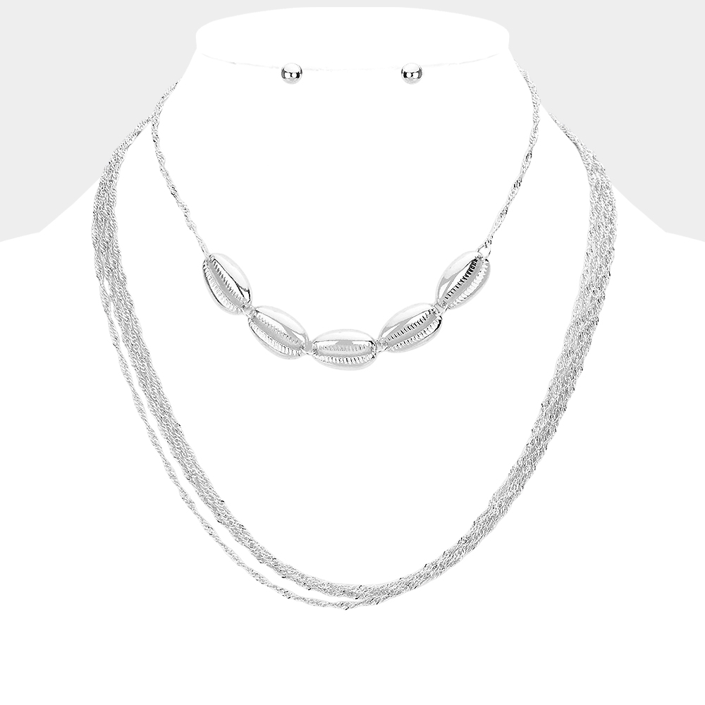 Rhinestone Embellished Metal Shell Pendant Necklace