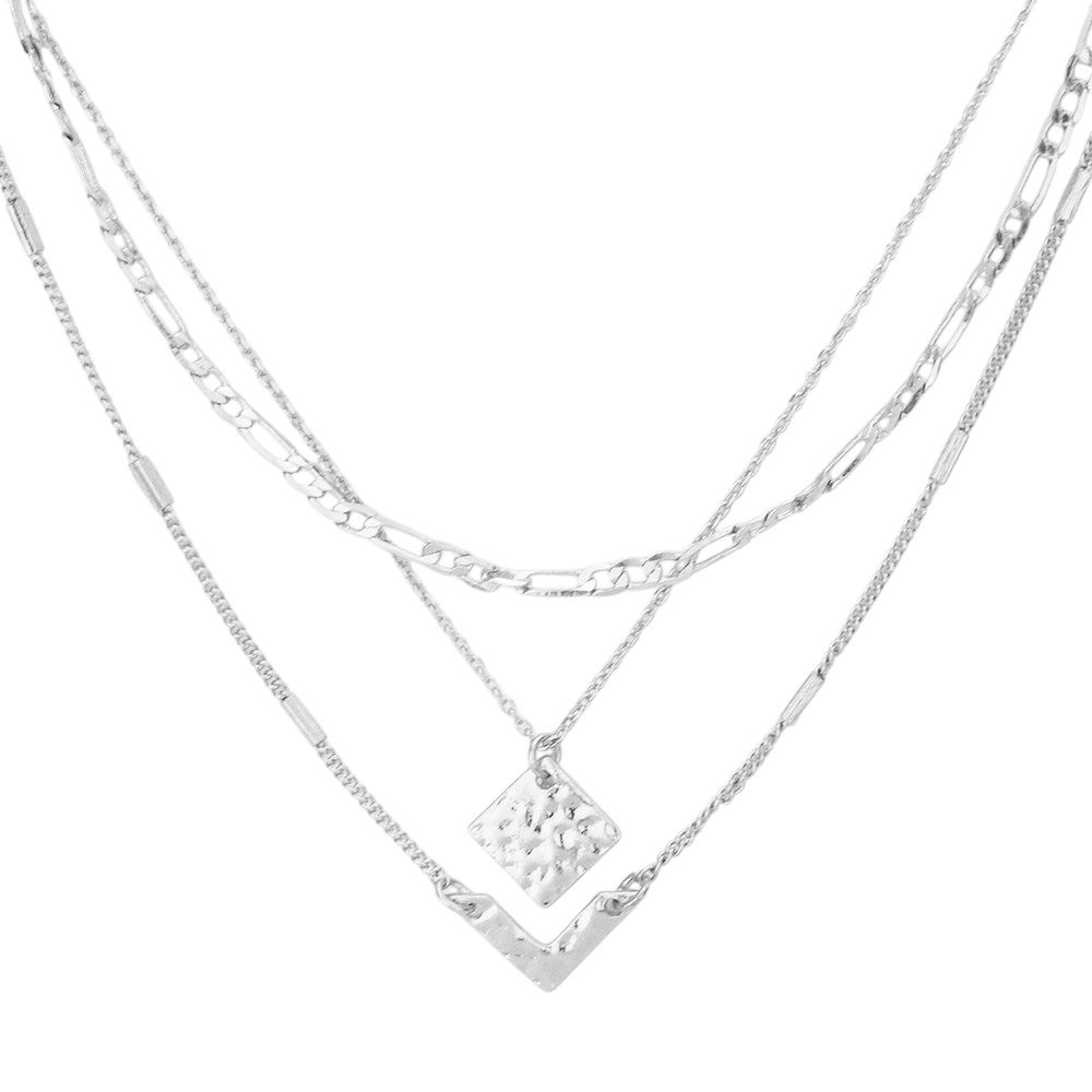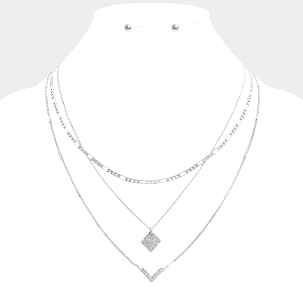 Metal Square Chevron Pendant Triple Layered Necklace