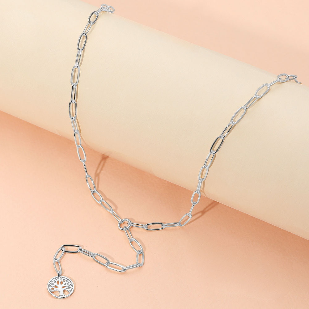 Metal Tree of Life Pendant Accent Paperclip Chain Y Necklace