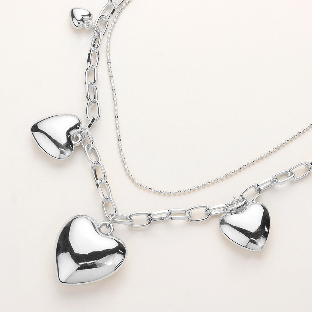 • Charming layered necklace designed with dangling heart accents for a playful yet polished look. Easy to style alone or layered with other pieces, it adds movement and personality to casual and dressy outfits. Ideal for daily wear, gifting, romantic styling, and trend-forward accessory collections.