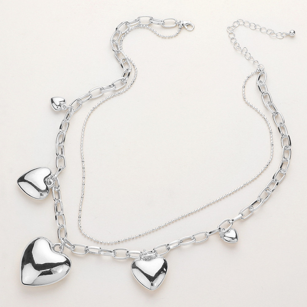 SECRET BOX_Metal Heart Charm Station Paper Clip Chain Layered Necklace
