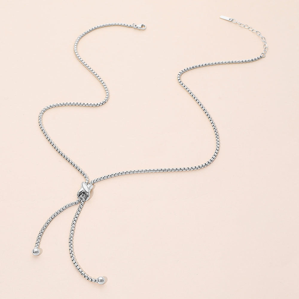 Details • Necklace Size : 20" + 2.5" L • Decor Size : 3" L • Sleek sliding-knot necklace with a fluid Y-style drop that creates a modern, elongated silhouette. Designed for adjustable wear and versatile styling from casual looks to evening outfits, perfect as a solo statement or layered for added dimension. • Hypoallergenic • Stainless Steel