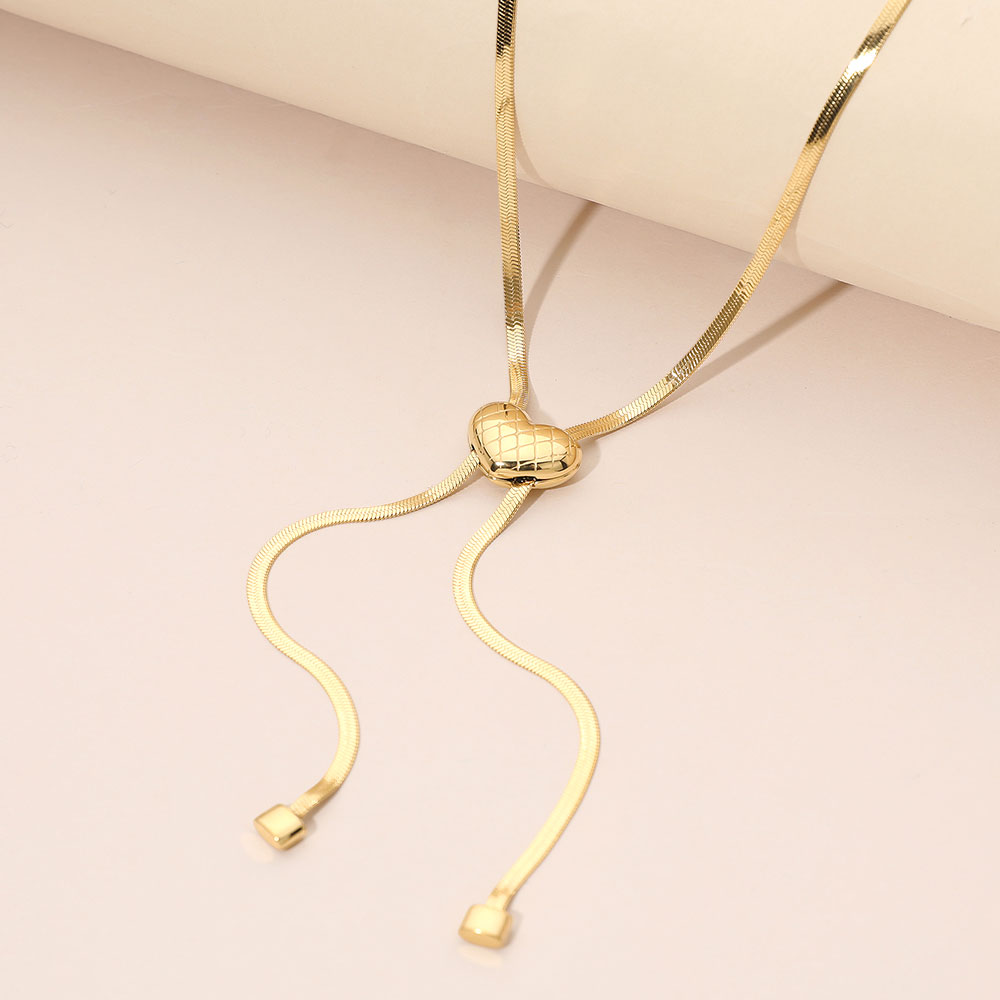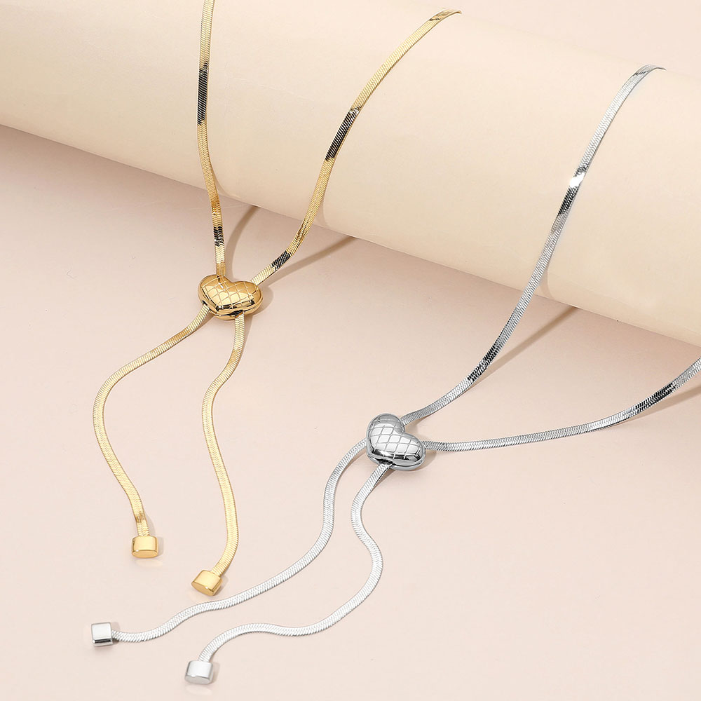 SECRET BOX_Stainless Steel Adjustable Heart Slider Herringbone Chain Necklace