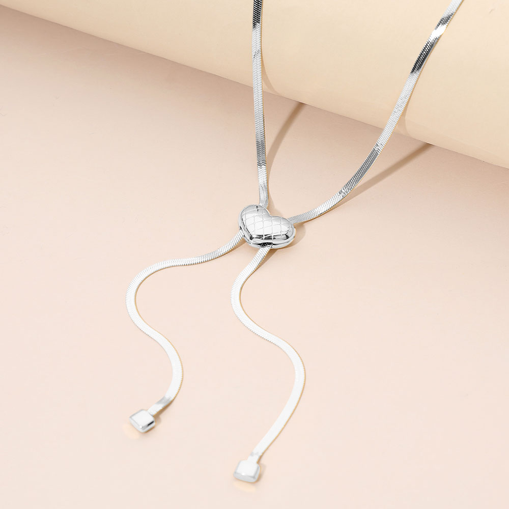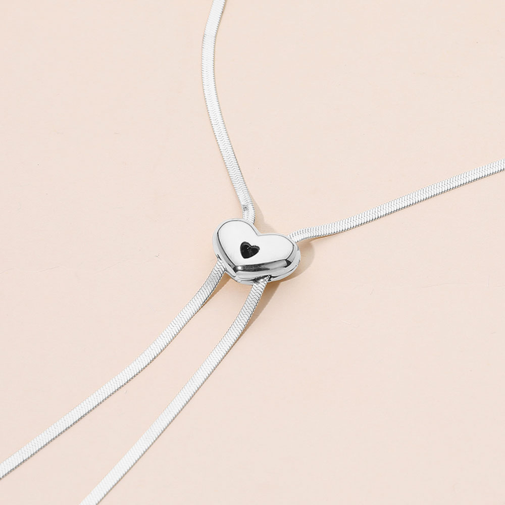SECRET BOX_Stainless Steel Adjustable Heart Slider Herringbone Chain Necklace