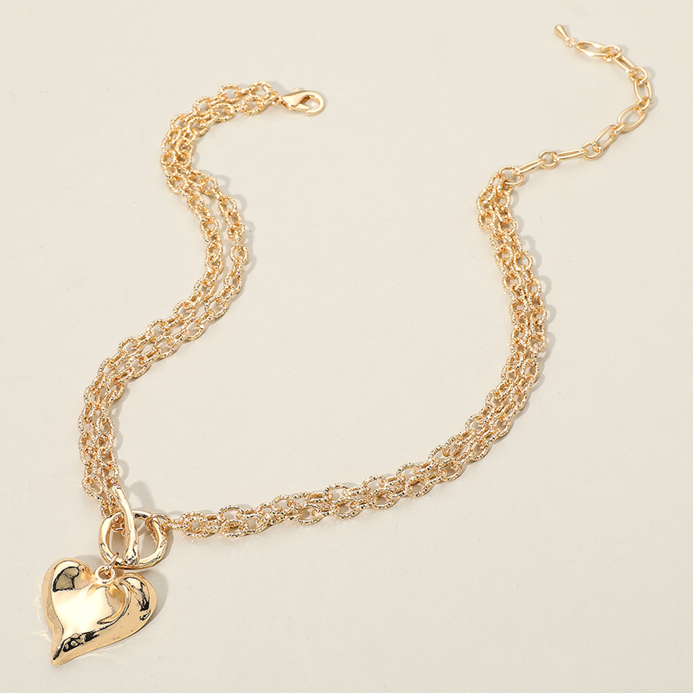 Details • Necklace Size : 15.5" + 3" L • Pendant Size : 1.75" L • Elegant heart pendant necklace featuring a multi-strand twisted chain design. A timeless piece perfect for adding a romantic touch to any outfit or occasion. • Lead and Nickel Compliant