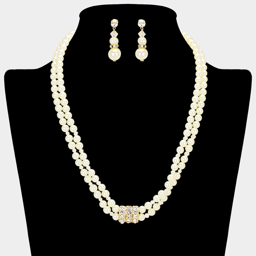 Rectangle Stone Cluster Pendant Double Layered Necklace