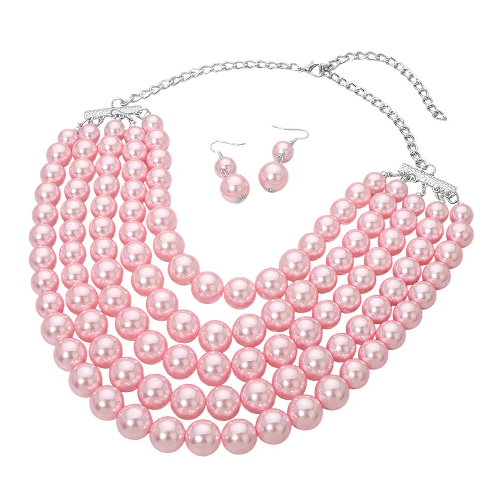 • This multi-strand bead necklace and earring set delivers a layered statement look with smooth, rounded beads arranged for volume and balance. Designed to elevate dressy outfits, special events, and boutique displays, it offers coordinated styling appeal that works for gifting, formal occasions, and trend-focused accessory collections.