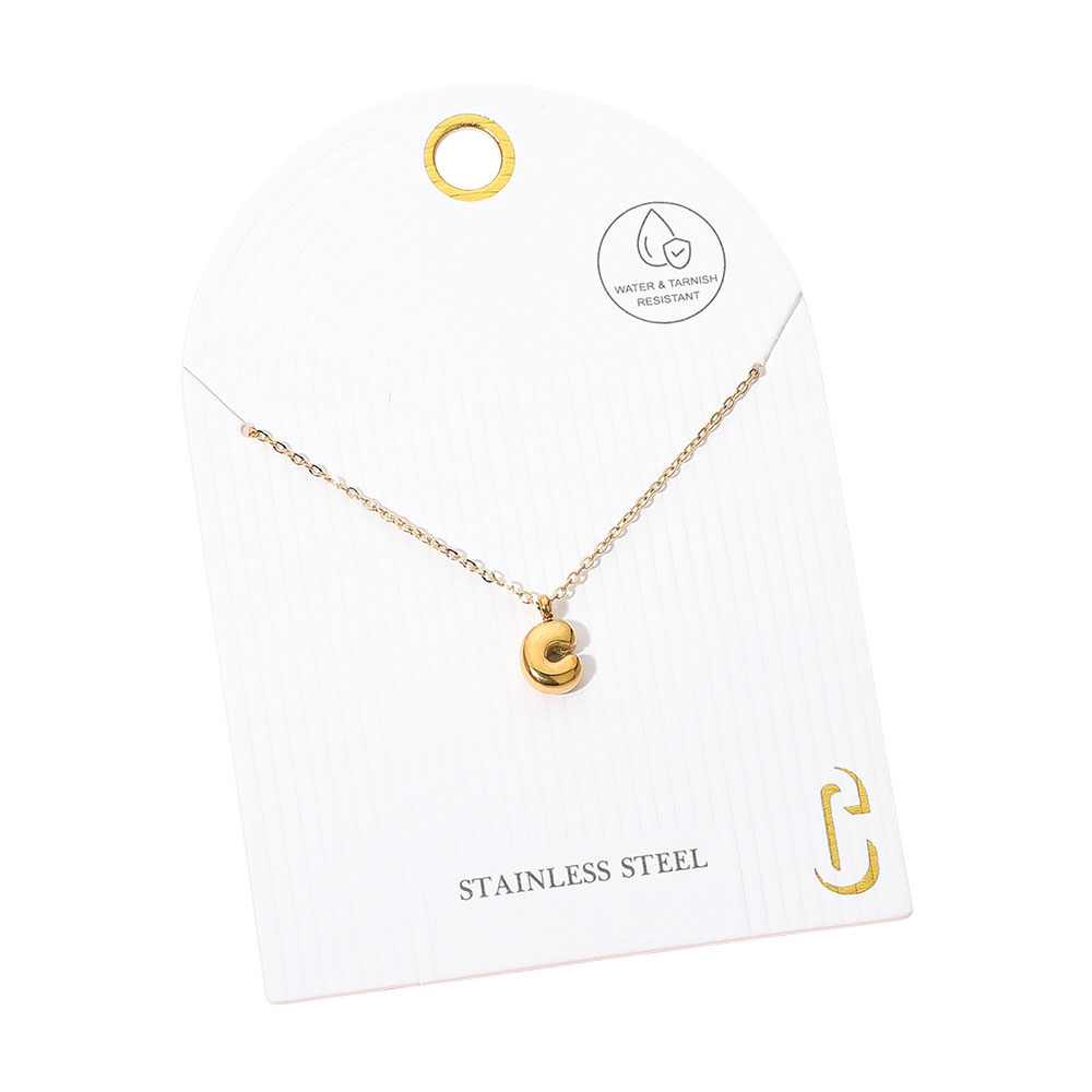 Details • Necklace Size : 18" L • Pendant Size : 0.3" L • Chic stainless steel necklace featuring a minimalist initial monogram pendant. Designed for everyday wear, this water and tarnish resistant piece adds a personal touch and effortless elegance to any outfit. • Stainless Steel