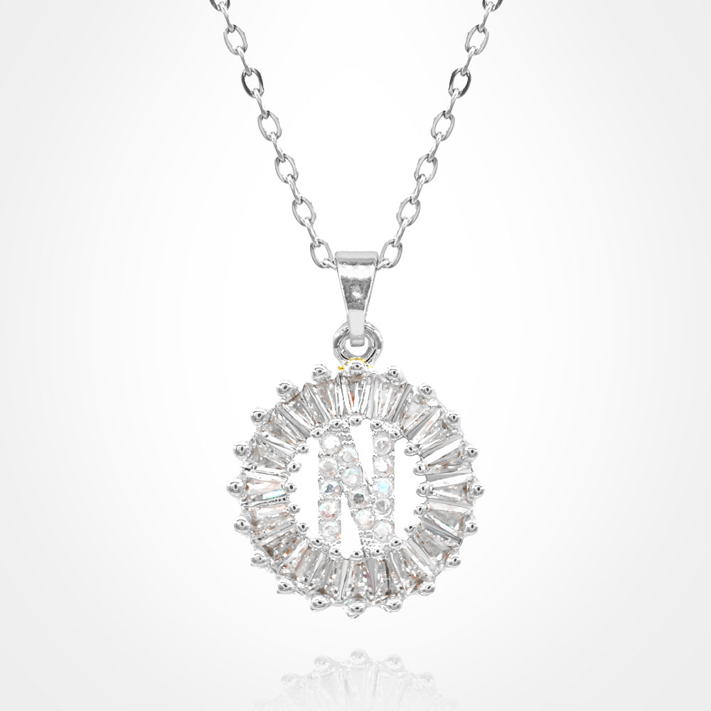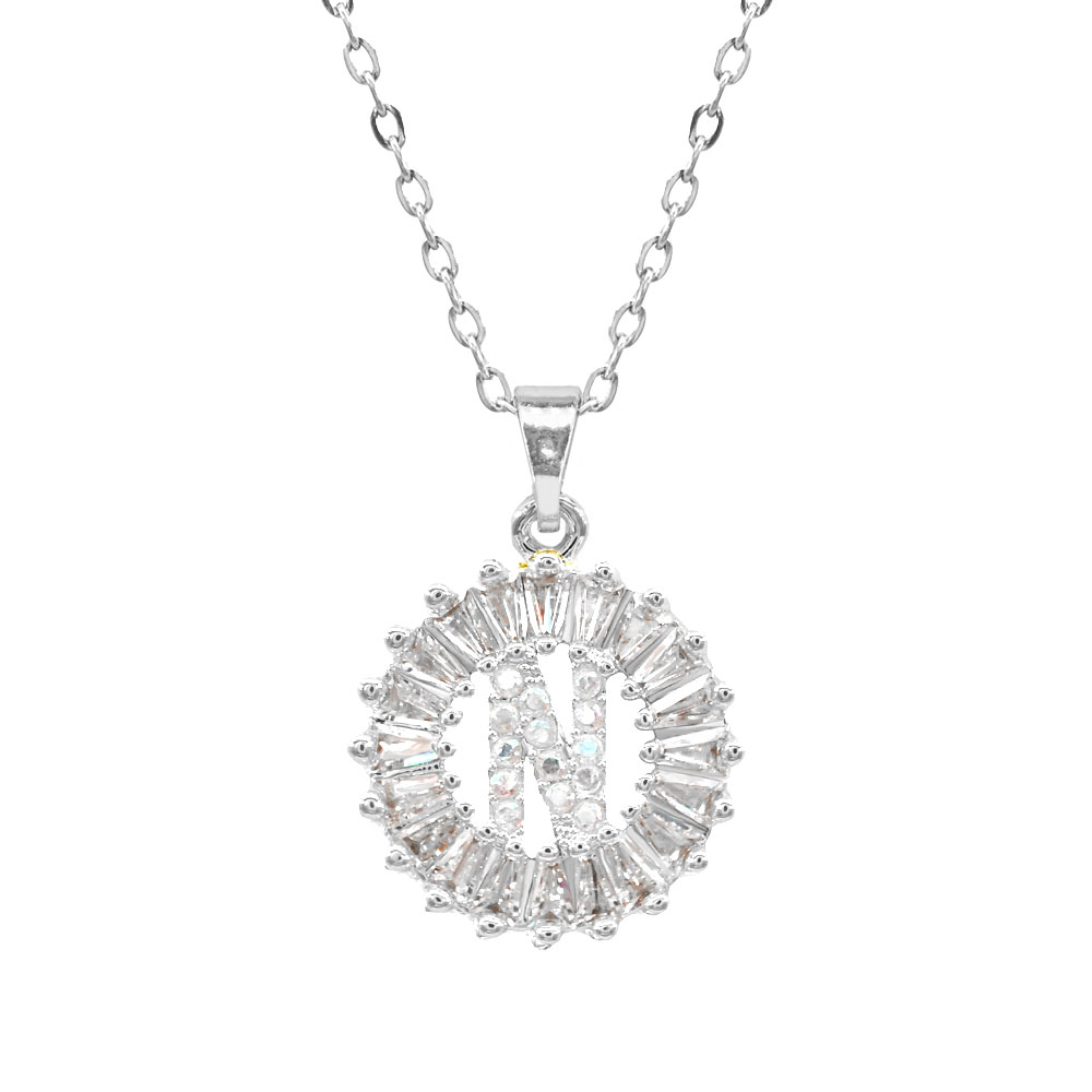-N- Stainless Steel CZ Stone Embellished Round Initial Monogram Pendant Necklace -N- Stainless Steel CZ Stone Embellished Round Initial Monogram Pendant Necklace -N- Stainless Steel CZ Stone Embellished Round Initial Monogram Pendant Necklace