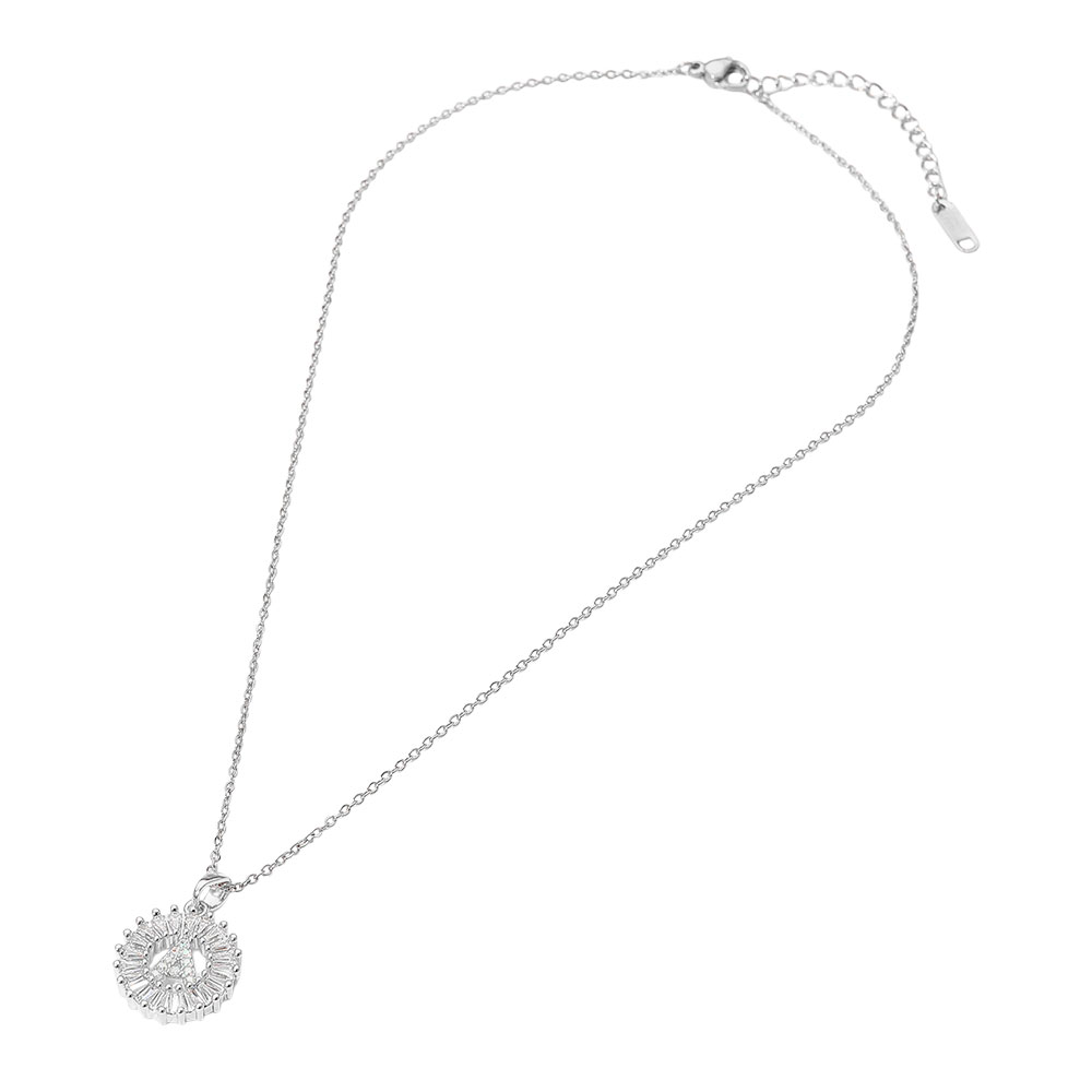-A- Stainless Steel CZ Stone Embellished Round Initial Monogram Pendant Necklace