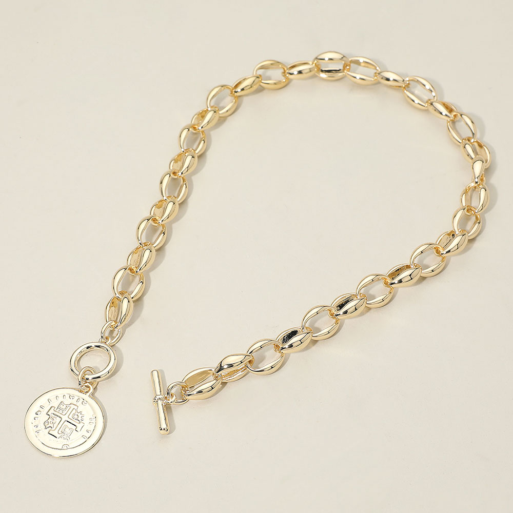 14K Gold Plated Cross Embossed Coin Charm Chunky Chain Toggle Necklace 14K Gold Plated Cross Embossed Coin Charm Chunky Chain Toggle Necklace 14K Gold Plated Cross Embossed Coin Charm Chunky Chain Toggle Necklace 14K Gold Plated Cross Embossed Coin Charm Chunky Chain Toggle Necklace