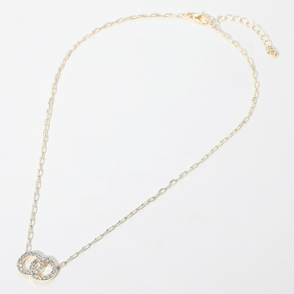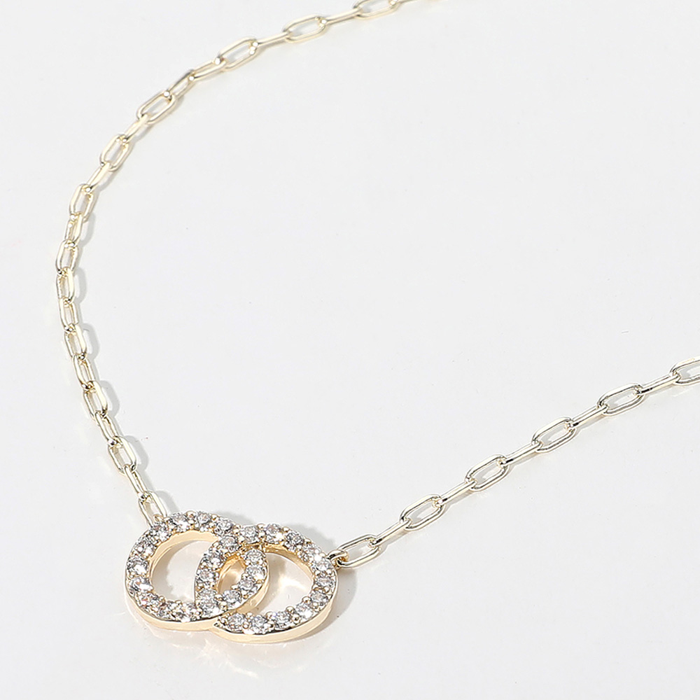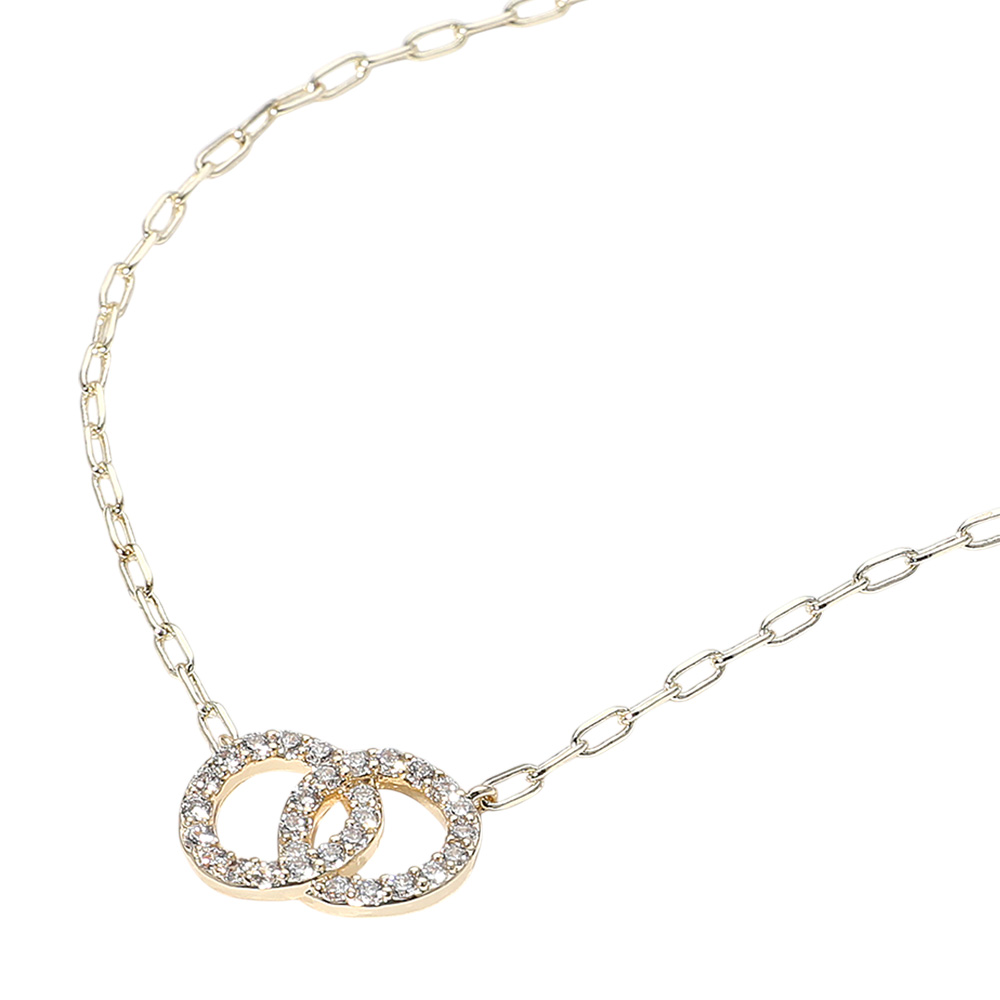 14K Gold Plated CZ Stone Paved Double Layered Circle Pendant Necklace