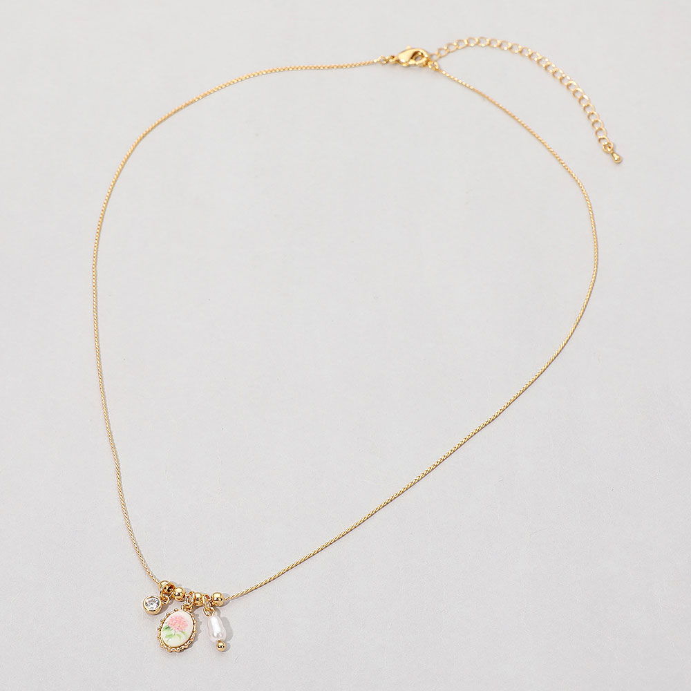 Details • Necklace Size : 16" + 3" L • Pendant Size : 0.6" X 0.6" • A petite pendant necklace with clustered charms and a delicate floral detail for soft sparkle and everyday styling. Perfect for layering or wearing solo to enhance casual looks, dressy outfits, and thoughtful gifts with a touch of refined charm. • Gold Dipped • Lead and Nickel Compliant • Made In Korea