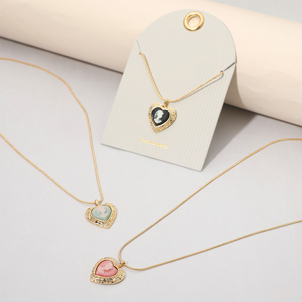 • Elegant heart-shaped cameo pendant necklace featuring a classic portrait design on a fine chain. A timeless statement piece ideal for layering or wearing solo, perfect for elevating everyday outfits, special occasions, and thoughtful gifting with a romantic vintage feel.