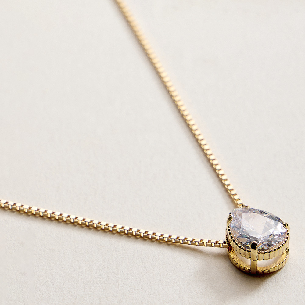 Details • Necklace Size : 18" + 1.75" L • Pendant Size : 0.4" X 0.5" • This teardrop solitaire charm pendant necklace features a classic, elegant silhouette designed for effortless everyday wear. Ideal for layering or wearing solo, it adds subtle sparkle to casual, work, or evening looks. A timeless jewelry essential that appeals to gift shoppers and boutique customers seeking refined, easy-to-style accessories. • Lead and Nickel Compliant • Hypoallergenic • Gold Filled • CZ Cubic Zirconia • Made In Brazil