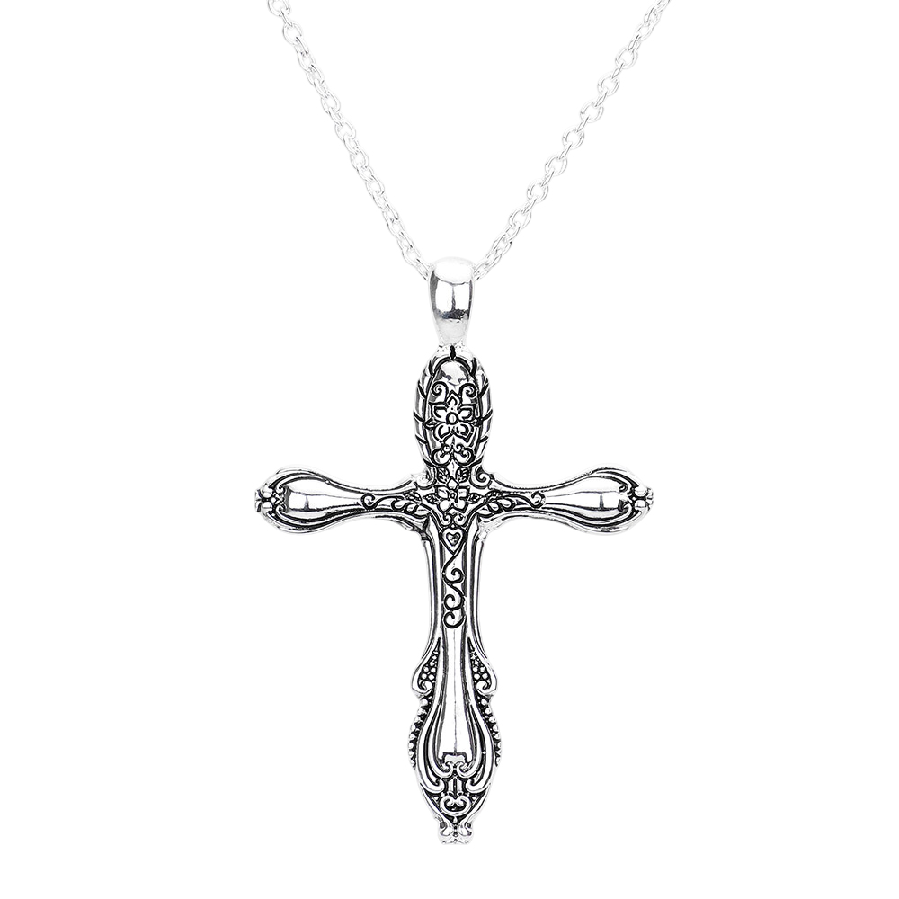 Vintage Stone Accent Cross Heart Charm Station Necklace