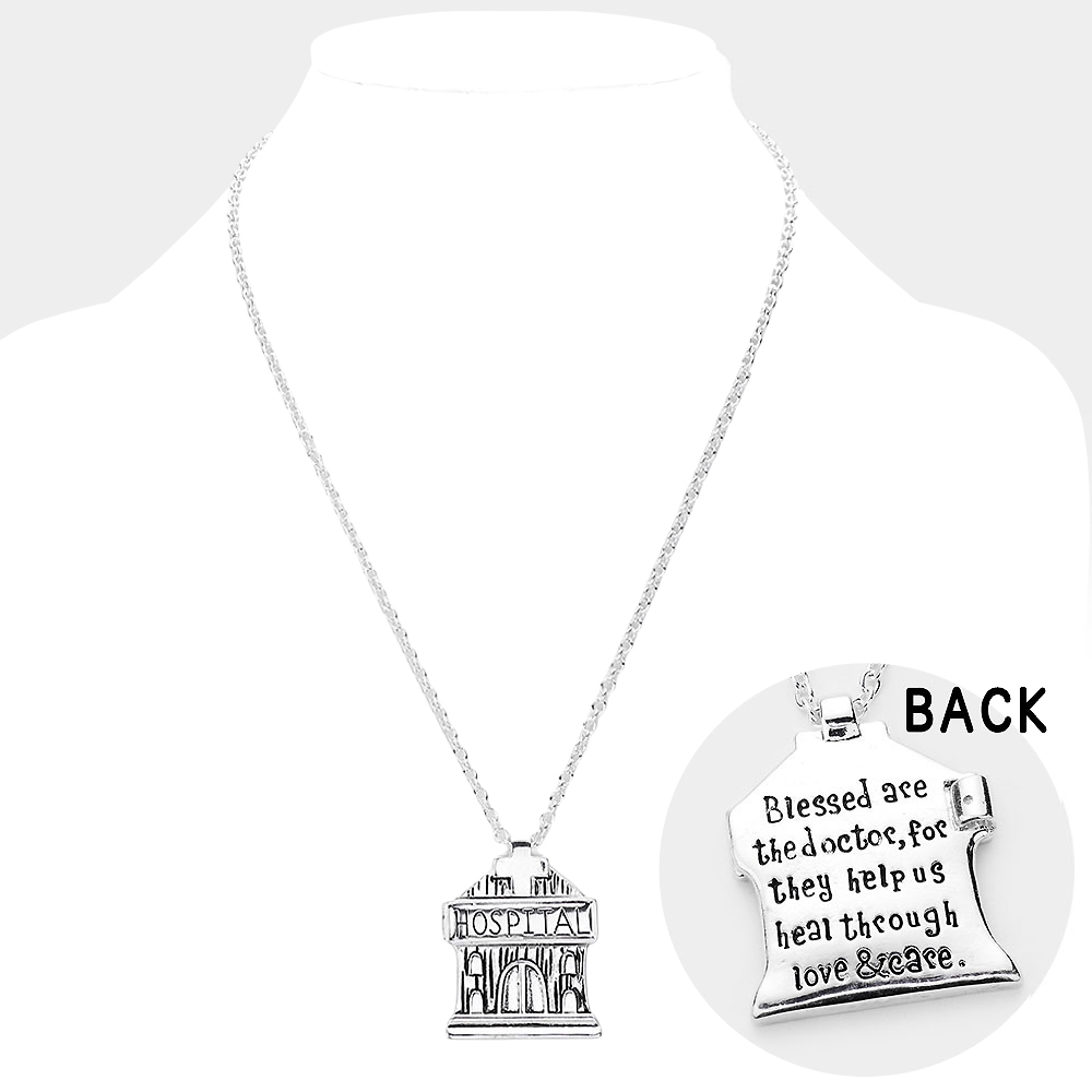 Abalone Embossed Antique Metal Butterfly Pendant Necklace