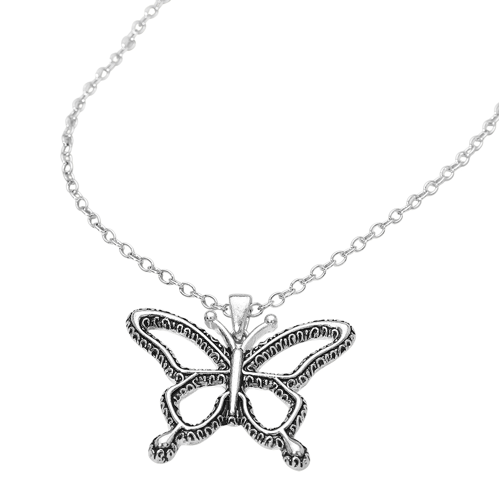 Details • Necklace Size : 20" + 3" L • Pendant Size : 1.75" X 1.5" • This butterfly pendant necklace features an intricately detailed wing design that adds a graceful, symbolic touch to everyday looks. Designed with a lightweight feel and easy layering length, it works well alone or paired with other necklaces. A versatile accessory for casual styling, gift shops, boutiques, and seasonal collections inspired by nature, transformation, and timeless charm. • Lead and Nickel Compliant
