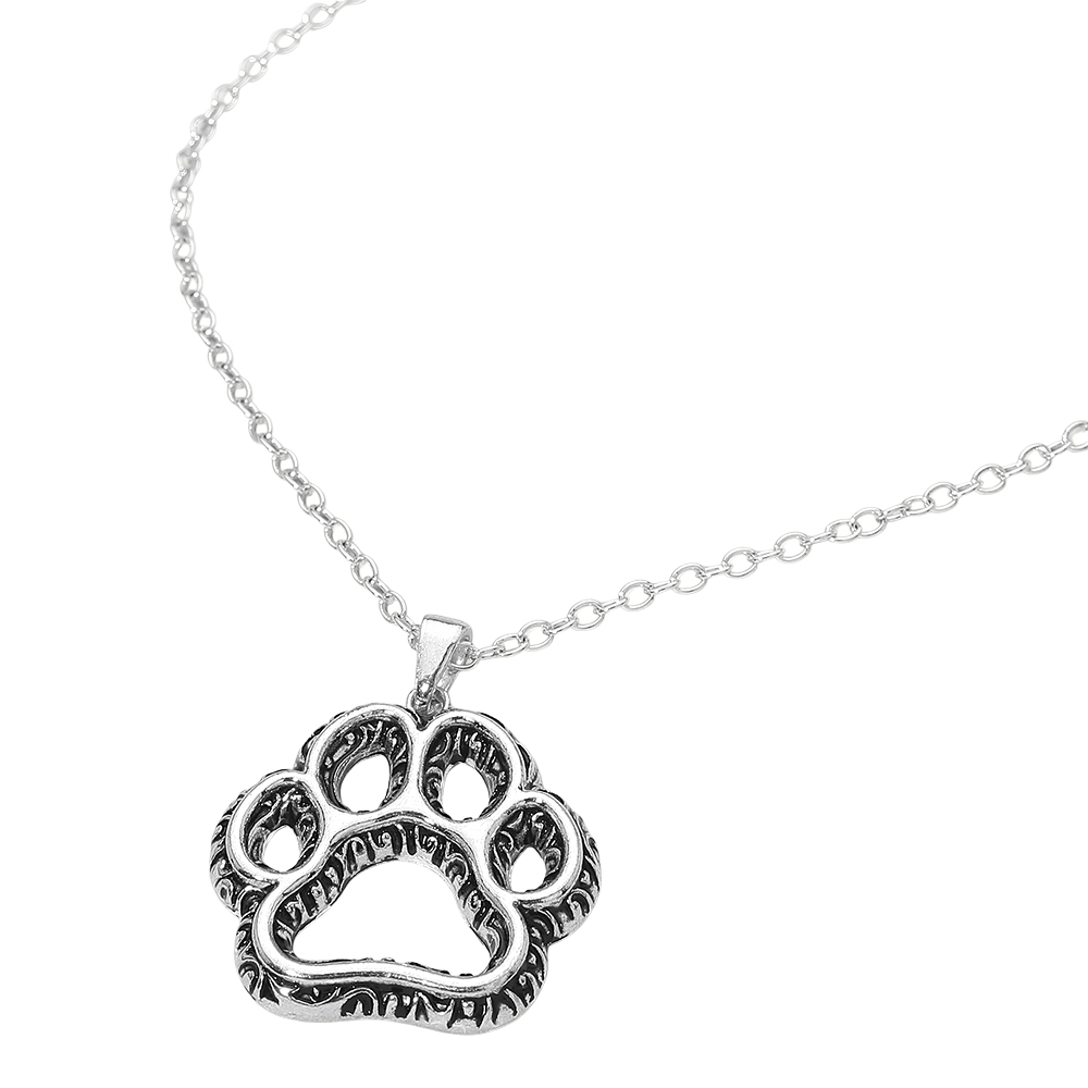 Details • Necklace Size : 20" + 3" L • Pendant Size : 1.5" X 1.75" • This paw print pendant necklace features a charming open design that adds a playful yet meaningful touch to everyday outfits. Easy to style alone or layered, it appeals to pet lovers and gift shoppers alike. A great addition for boutiques seeking symbolic, trend-friendly accessories suitable for daily wear and thoughtful gifting. • Lead and Nickel Compliant