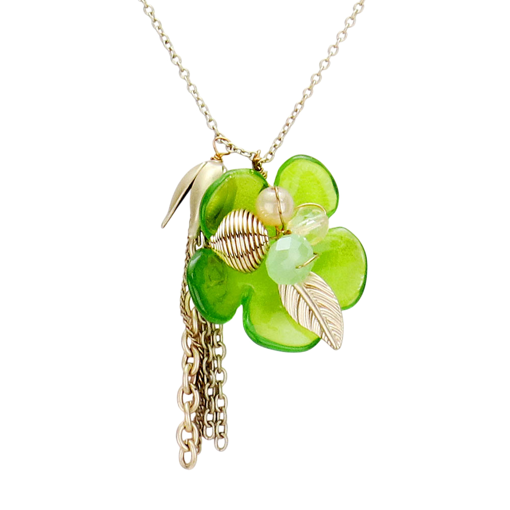 Bloom Flower Pendant Tassel Drop Necklace