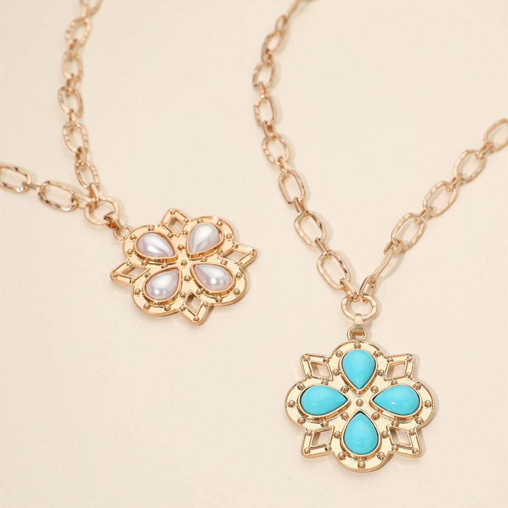 • Charming necklace featuring a floral-shaped pendant with teardrop stone accents on a linked chain. Perfect for both casual and dressy occasions, offering a refined and graceful look. A timeless accessory that adds sophistication and feminine elegance to any outfit or jewelry collection.