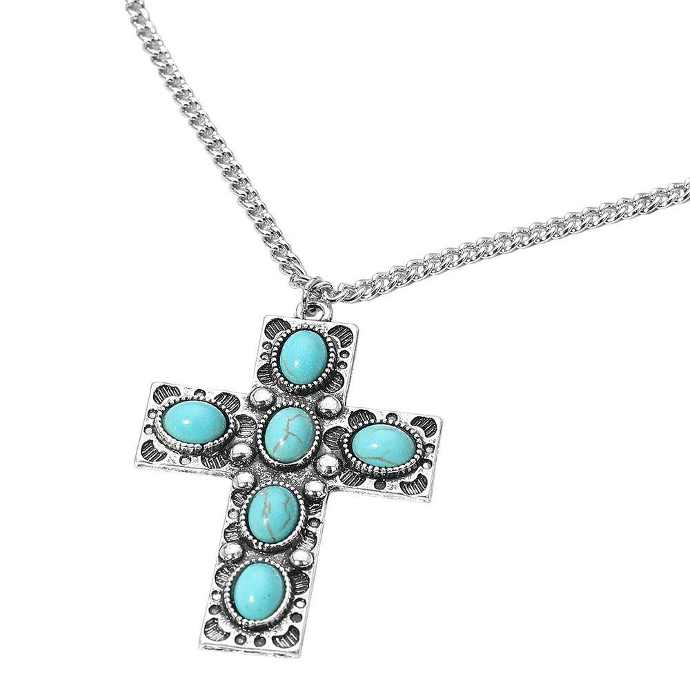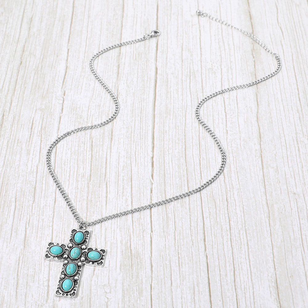 Details • Necklace Size : 23.5" + 3" L • Pendant Size : 1.5" X 2.2" • This oval stone cross pendant necklace showcases intricate detailing and a bold, classic silhouette. Designed with a vintage-inspired aesthetic, it offers a refined balance of faith and fashion, making it an elegant accessory for everyday wear or meaningful occasions. • Lead and Nickel Compliant