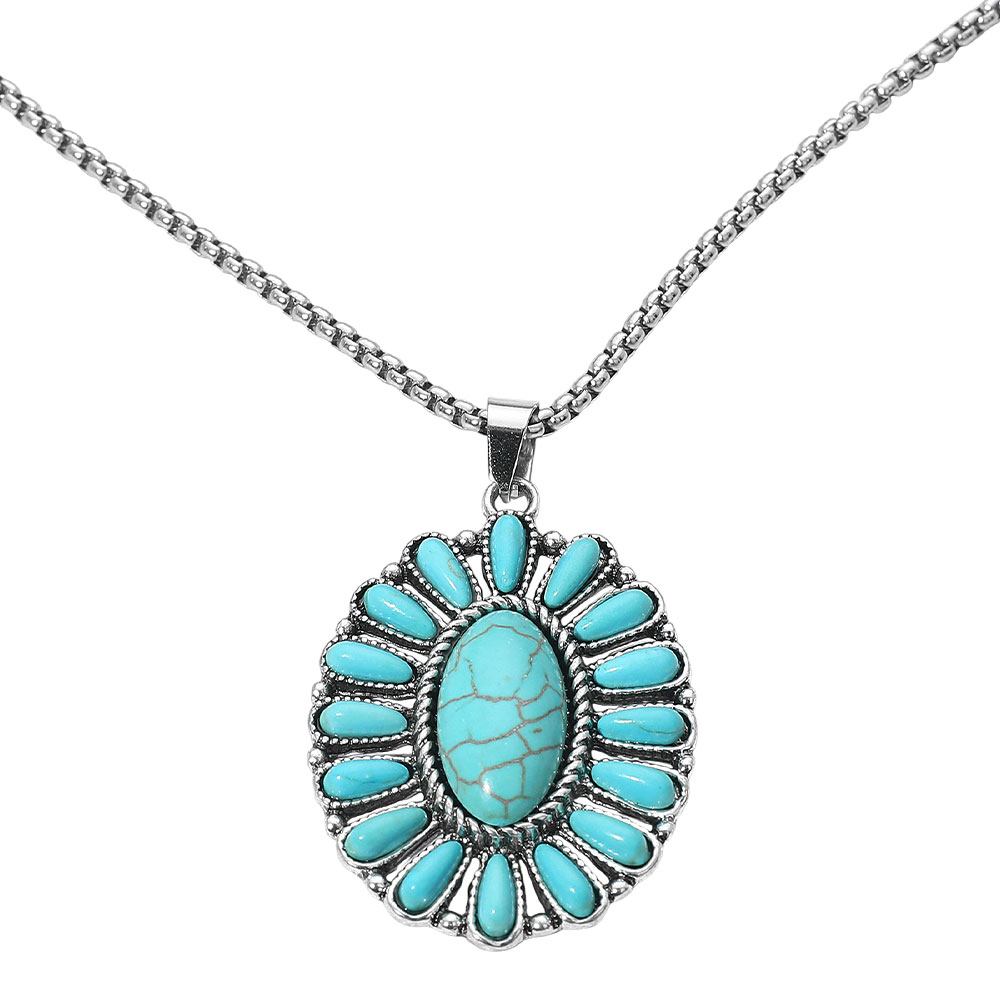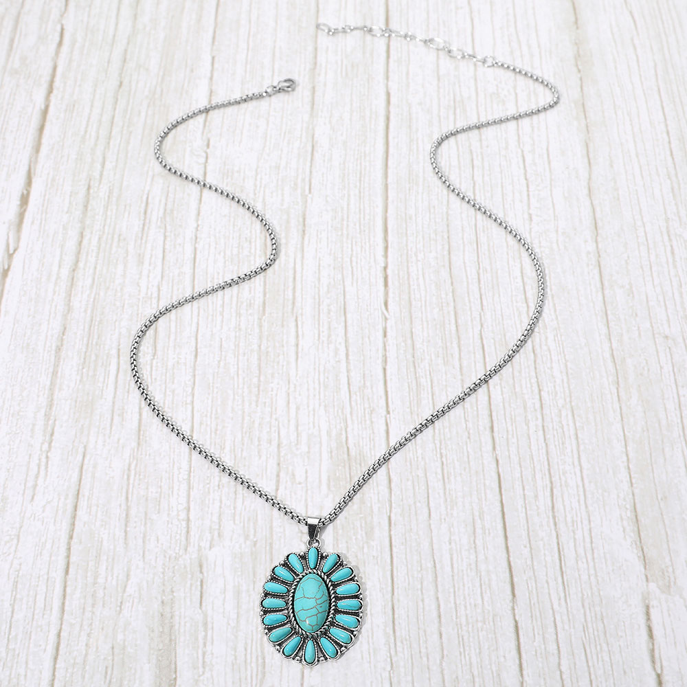 Details • Necklace Size : 23.5" + 3" L • Pendant Size : 1.25" X 1.8" • This radiant oval statement pendant necklace features a stunning centerpiece framed by teardrop accents in a classic sunburst pattern. Designed with vintage flair, it adds a bold and elegant touch to any outfit, making it a standout accessory for both casual and formal looks. • Lead and Nickel Compliant