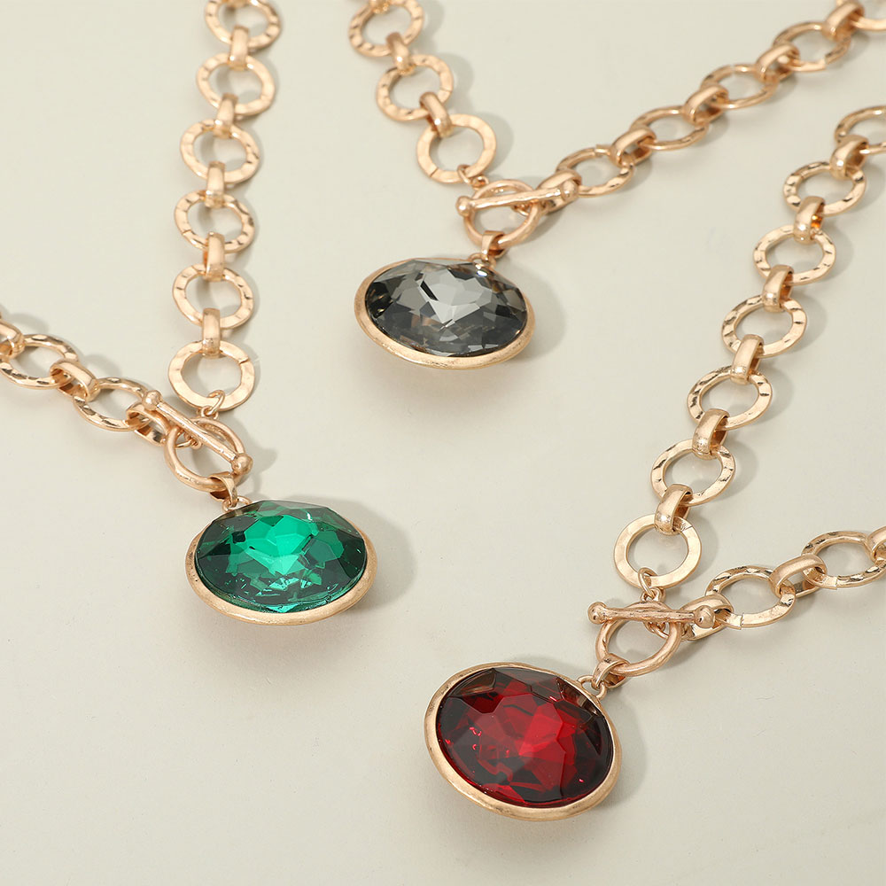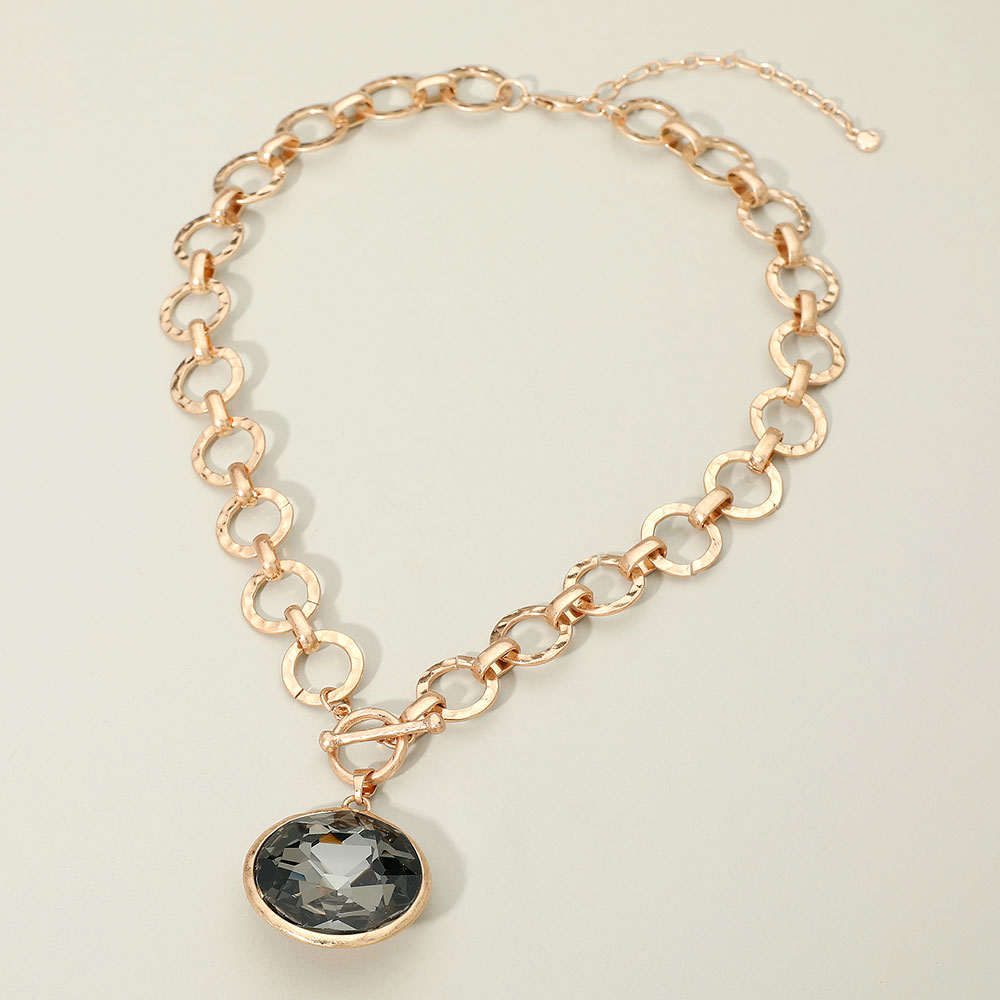 Details • Necklace Size : 18" + 3" L • Pendant Size : 1.4" X 1.4" • Toggle Closure • Add a touch of elegance to your style with this hammered link chain necklace featuring a stunning faceted gem pendant. Designed for both sophistication and edge, this piece is ideal for evening wear or everyday glamour, making it a standout addition to any jewelry collection. • Lead and Nickel Compliant