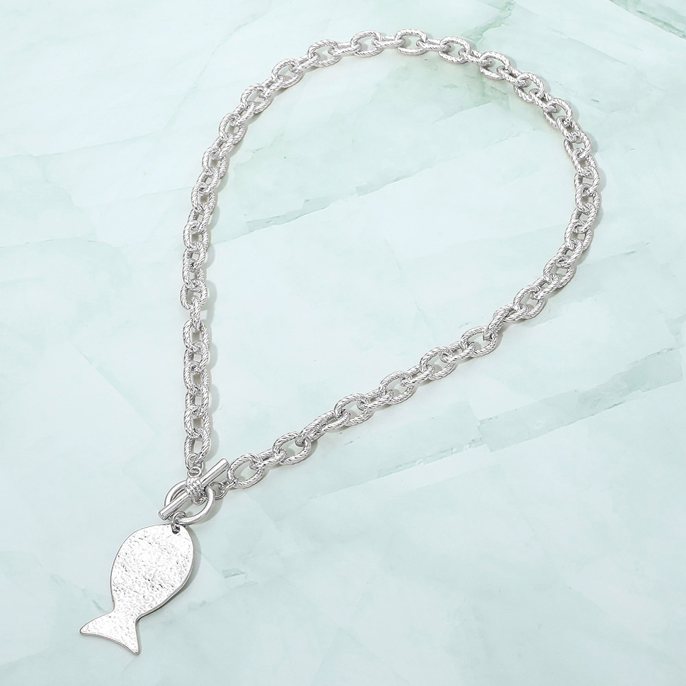 Brushed Metal Fish Charm Toggle Necklace Brushed Metal Fish Charm Toggle Necklace Brushed Metal Fish Charm Toggle Necklace