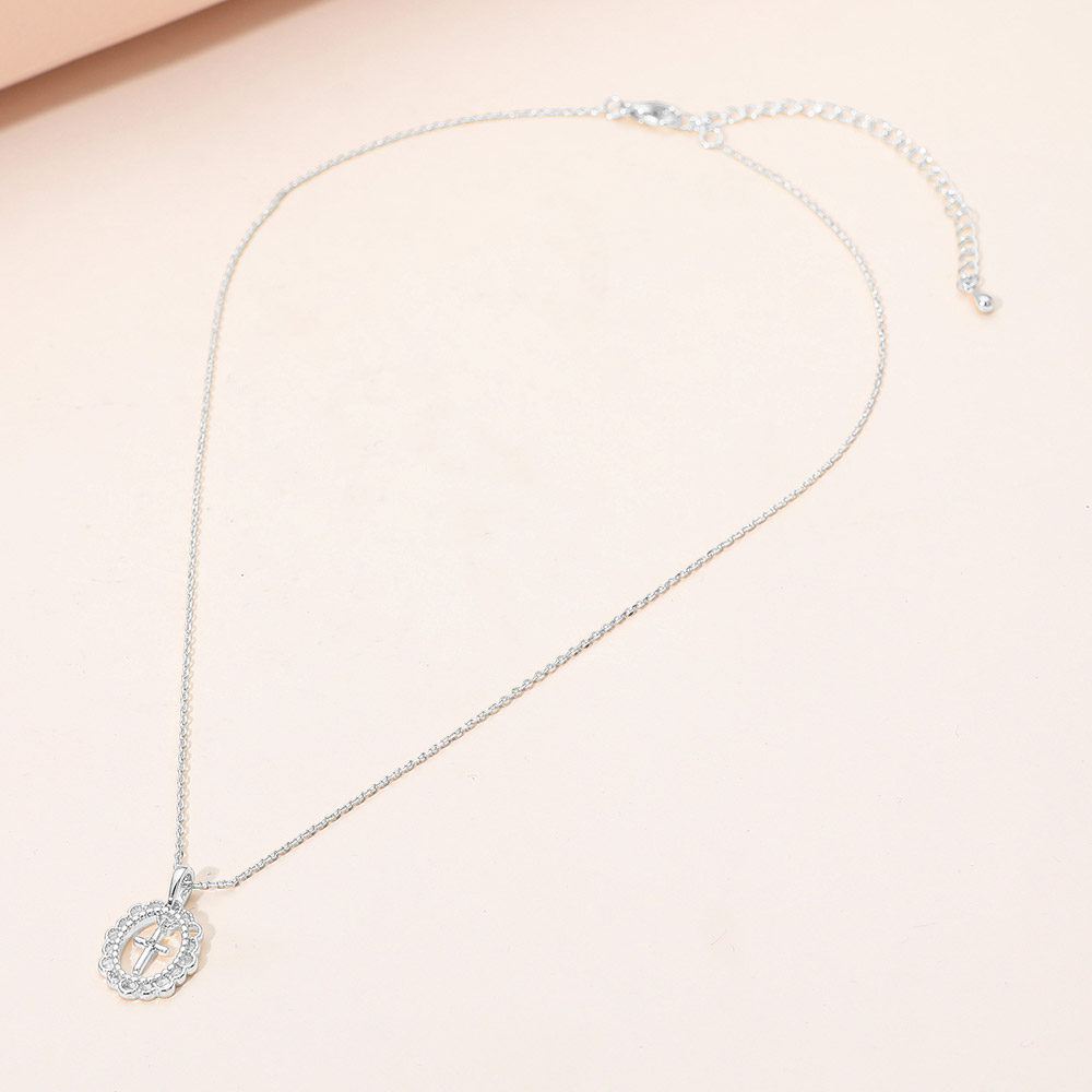 • This elegant oval cross pendant necklace exudes timeless grace and faith-inspired charm. The delicate chain and polished pendant create a refined silhouette, making it a meaningful accessory that adds a touch of serenity and sophistication to any outfit, day or night.