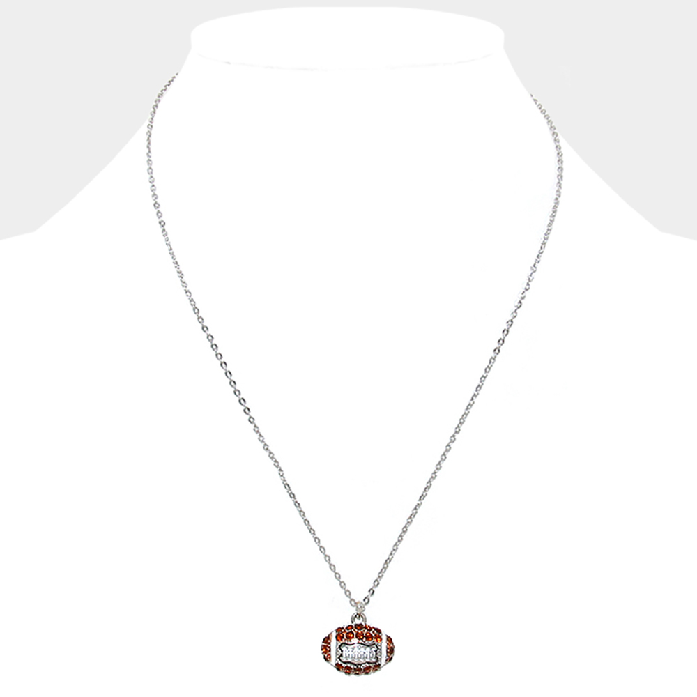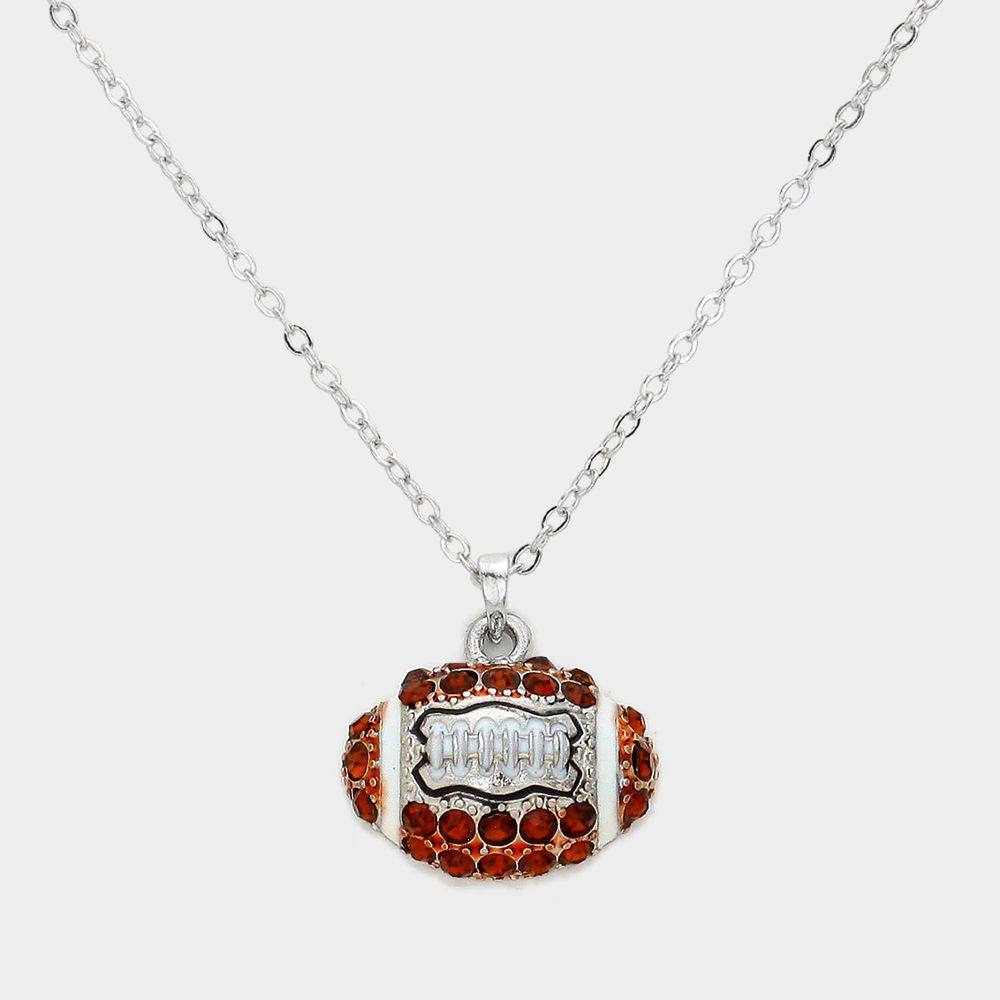 Details • Necklace Size : 16" + 2" L • Pendant Size : 0.7" X 0.7" • Add sporty flair to your outfit with this football pendant necklace, perfect for game day, tailgating, or everyday wear. A great gift for football fans, players, or coaches who want to showcase their passion with stylish accessories. • Lead and Nickel Compliant