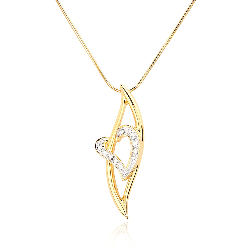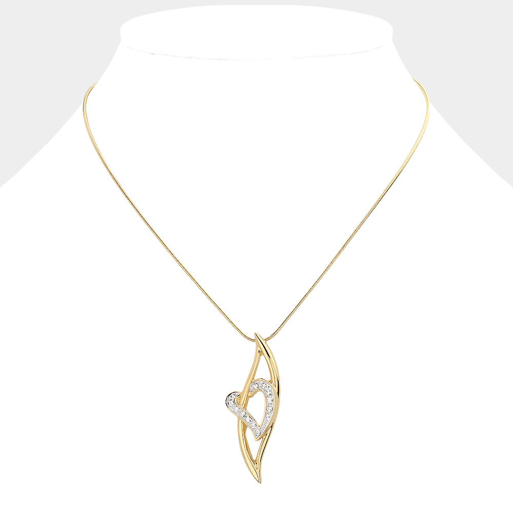 Rhinestone Trimmed Druzy Heart Pendant Necklace