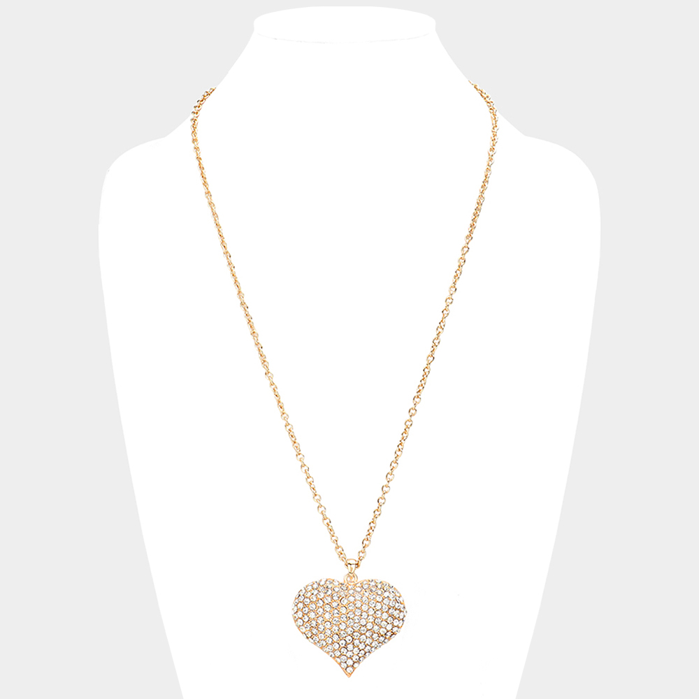 Crystal Pave Heart Pendant Long Necklace