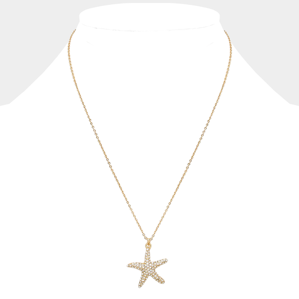 Crystal Pave Starfish Pendant Necklace