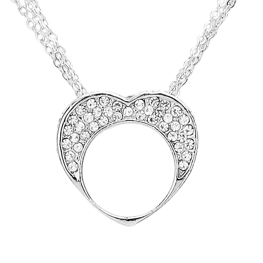Crystal Rhinestone Pave Heart Cutout Round Pendant Necklace