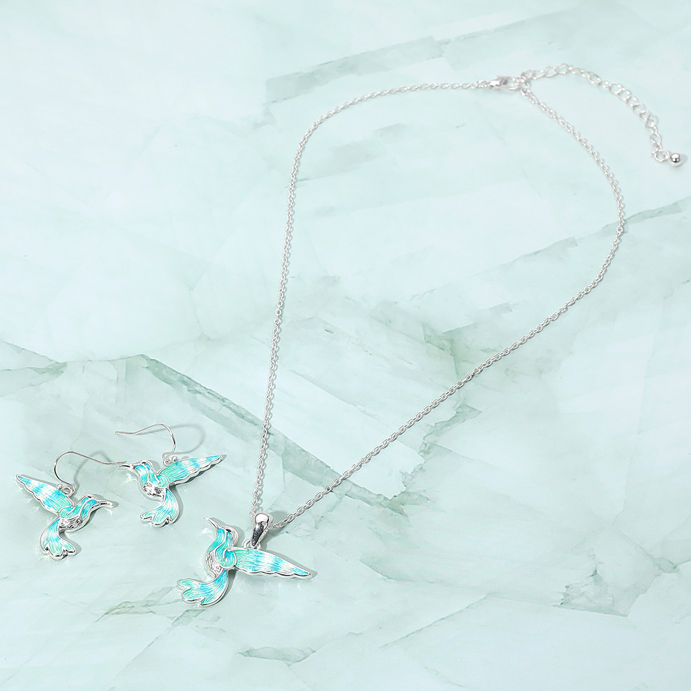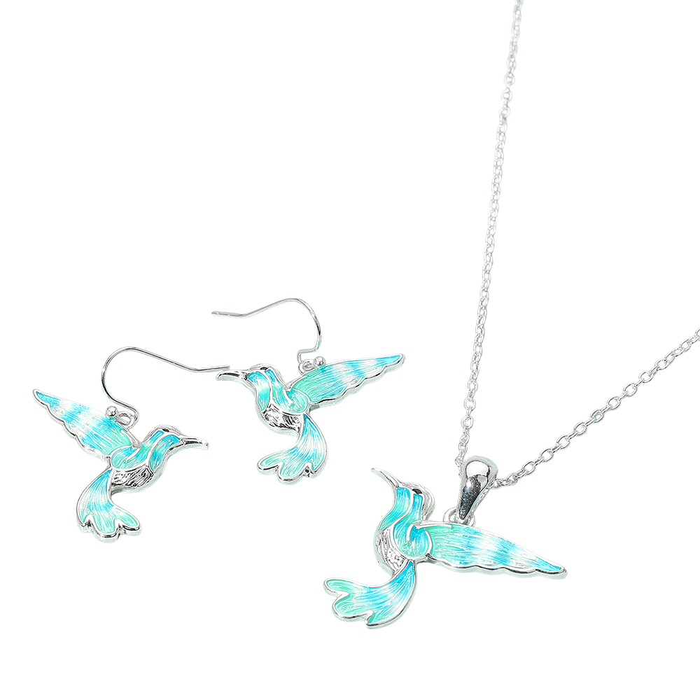 • This hummingbird enamel necklace and earring set captures the grace and vitality of nature’s most delicate flyer. Designed with intricate details, it symbolizes joy and lightness, adding an elegant touch to your look. Perfect for everyday wear or as a meaningful gift choice.