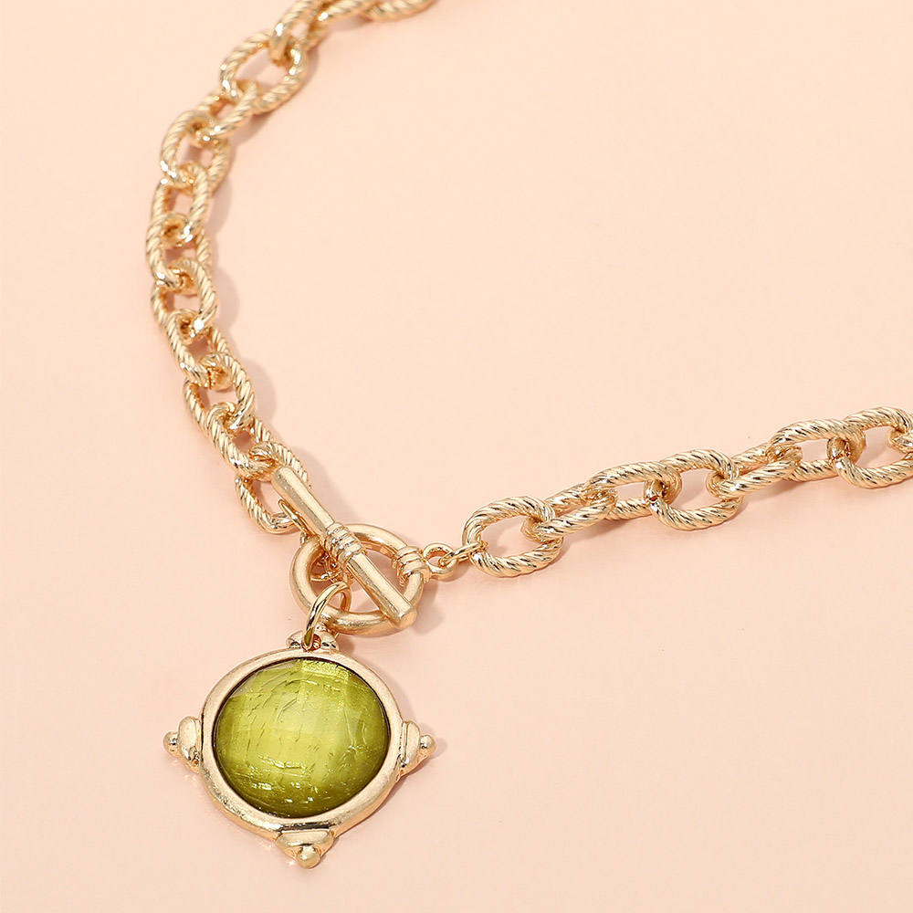 Details • Necklace Size : 18" L • Pendant Size : 1.2" X 1.2" • Elegant chain necklace featuring a round charm with subtle texture and a toggle-style closure. Designed for easy styling, this versatile piece adds a refined statement to casual or elevated looks and layers effortlessly with other necklaces for a modern, curated finish. • Lead and Nickel Compliant