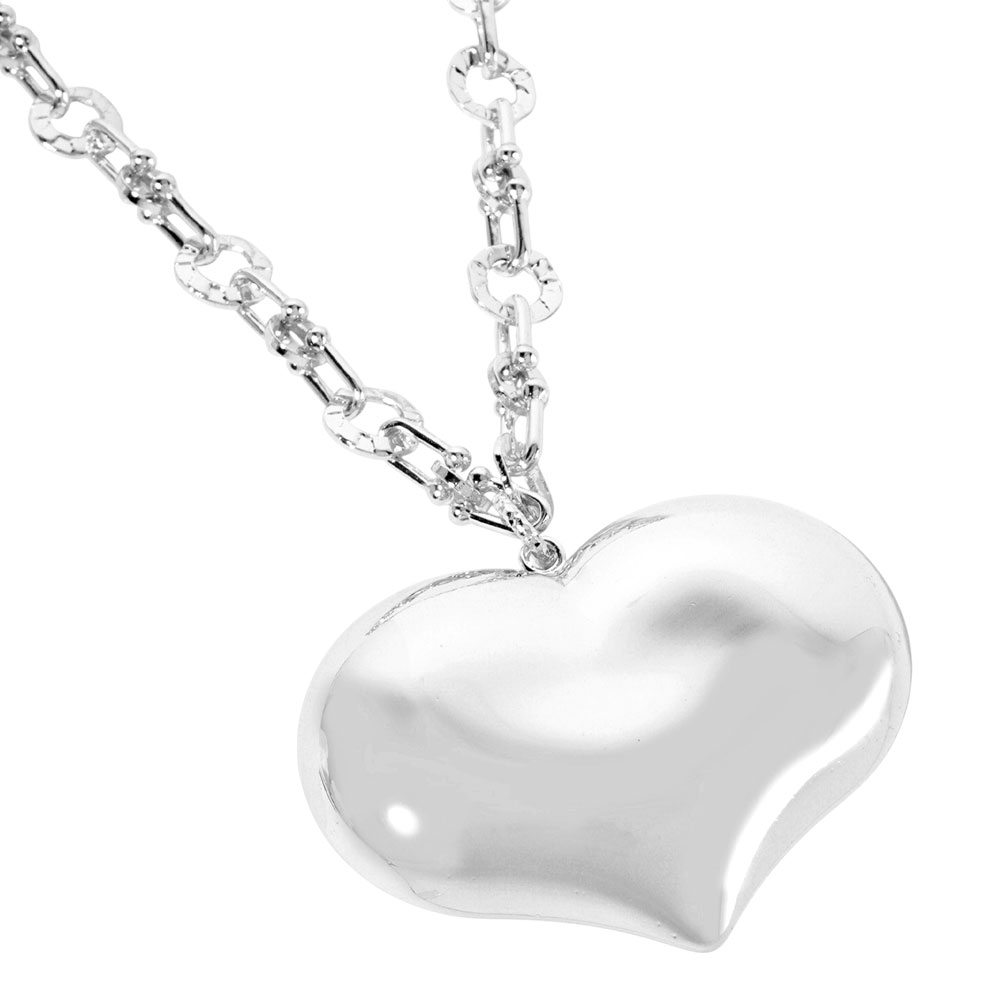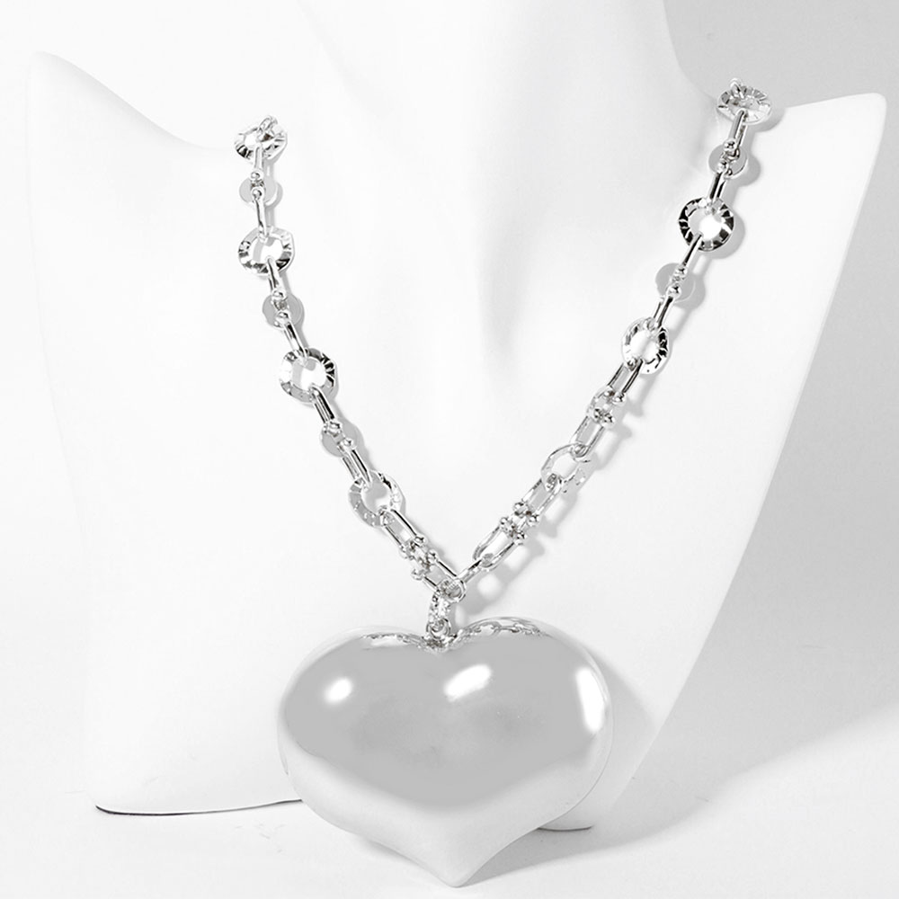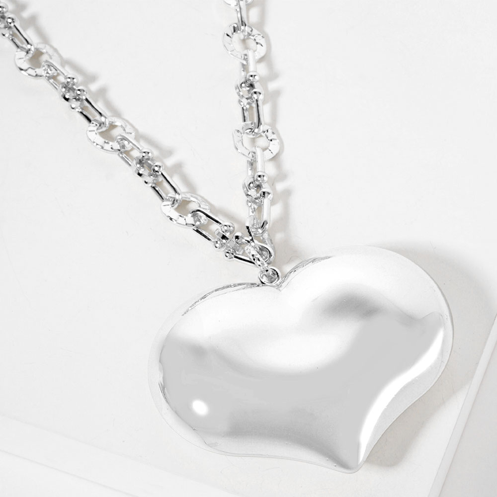 • Statement heart pendant necklace with sleek chain detailing creates a modern romantic look for everyday or special occasions. Designed to sit beautifully at the neckline, it adds standout shine and effortless elegance to layered or solo jewelry styling.