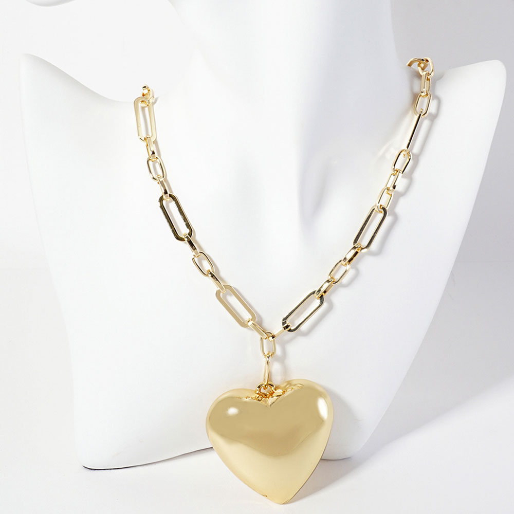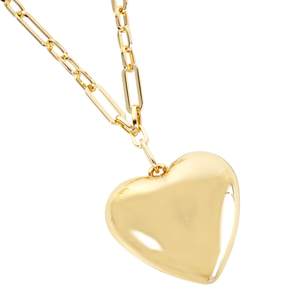 Gold Dipped Bold Puffy Heart Pendant Paperclip Link Chain Necklace