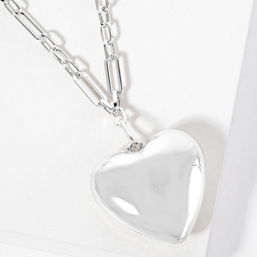 Gold Dipped Bold Puffy Heart Pendant Paperclip Link Chain Necklace