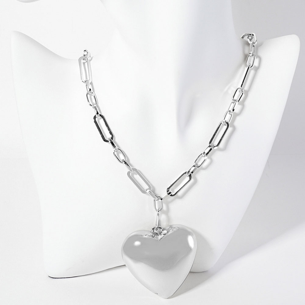 Details • Necklace Size : 18" + 1" L • Pendant Size : 2" X 2" • Striking heart drop necklace paired with a modern elongated link chain for a standout finish. Designed to frame the neckline with polished impact, this statement piece elevates everyday outfits and adds confident glamour to evening and layered looks. • Gold Dipped • Lead and Nickel Compliant • Made In Korea