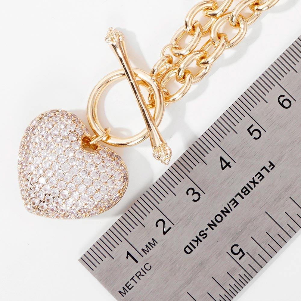 Details • Necklace Size : 18" L • Pendant Size : 1.2" X 1.6" • Elevate your style with this chic Heart Charm Link Necklace, featuring a bold chain design and a sparkling heart pendant for a touch of romance. Perfect for layering or wearing solo, this statement piece adds modern elegance to any outfit, making it ideal for everyday wear or special occasions. • Lead and Nickel Compliant • Made In Korea • Gold Dipped • CZ Cubic Zirconia