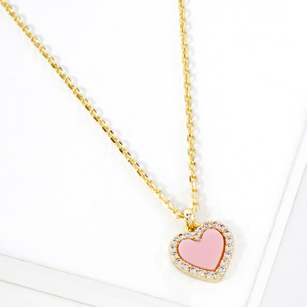 Gold Dipped CZ Stone Paved Rim Heart Pendant Necklace