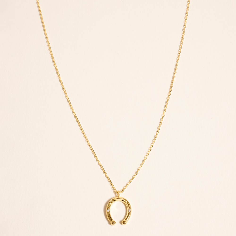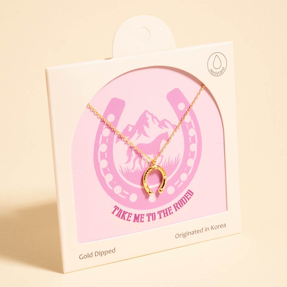 Details • Necklace Size : 16" + 2" L • Pendant Size : 0.4" X 0.6" • Western-inspired horseshoe pendant necklace designed to bring symbolic style and everyday charm. A meaningful accent for rodeo outfits, country-themed collections, festivals, and gift assortments. Ideal for layering, boutique displays, and customers drawn to western fashion with a timeless, lucky touch. • Hypoallergenic • Made In Korea • Gold Dipped
