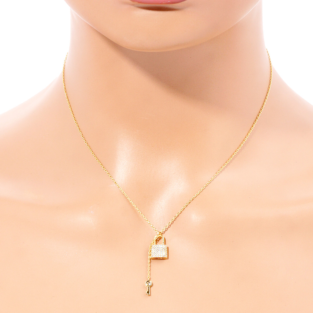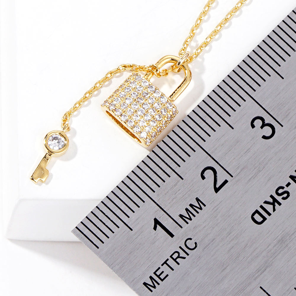 Gold Dipped Rhinestone Key Lock Pendant Necklace